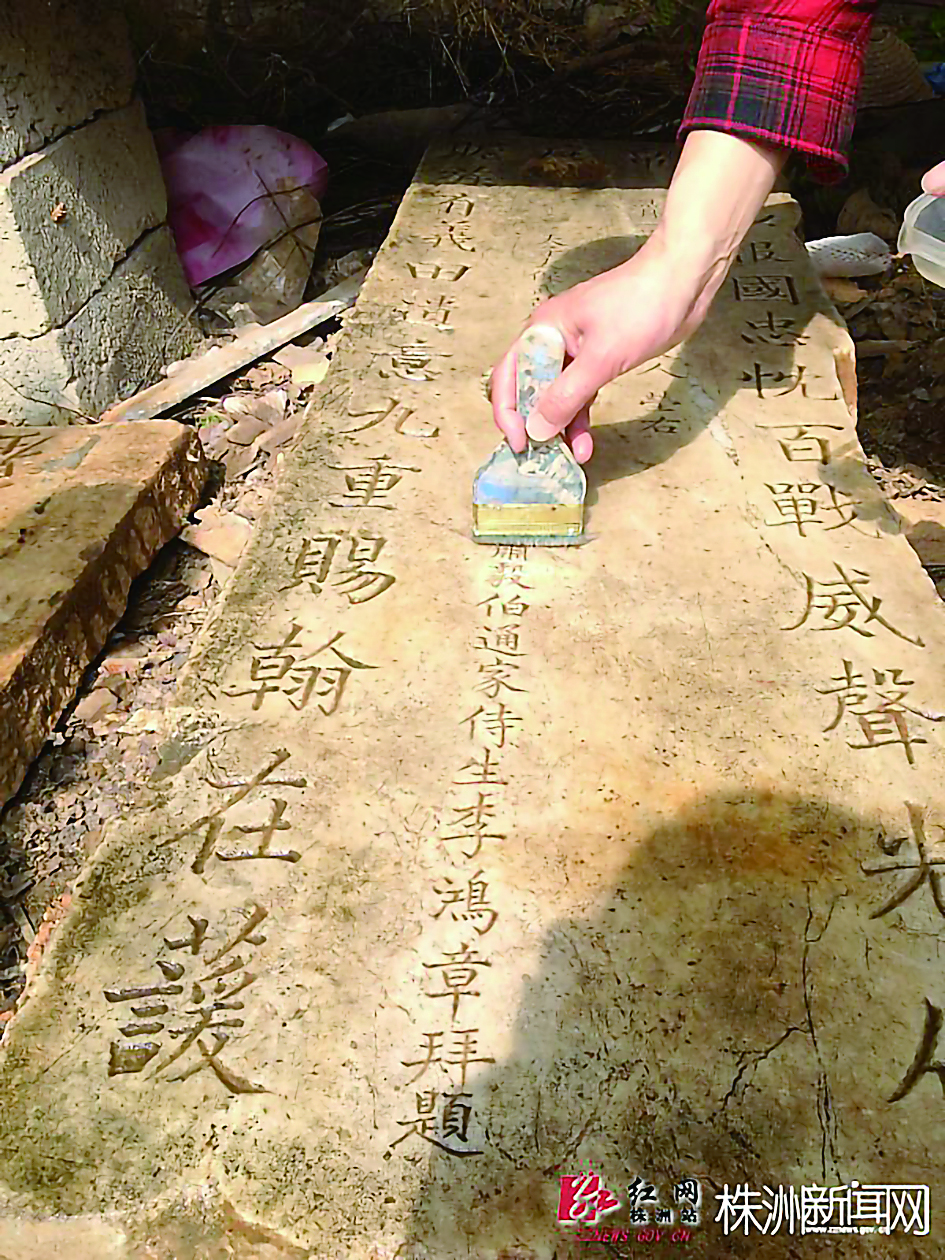 2016年3月,株洲一民间收藏爱好者在天元区雷打石镇脉湾村的一片杂草地里发现一块墓碑。
