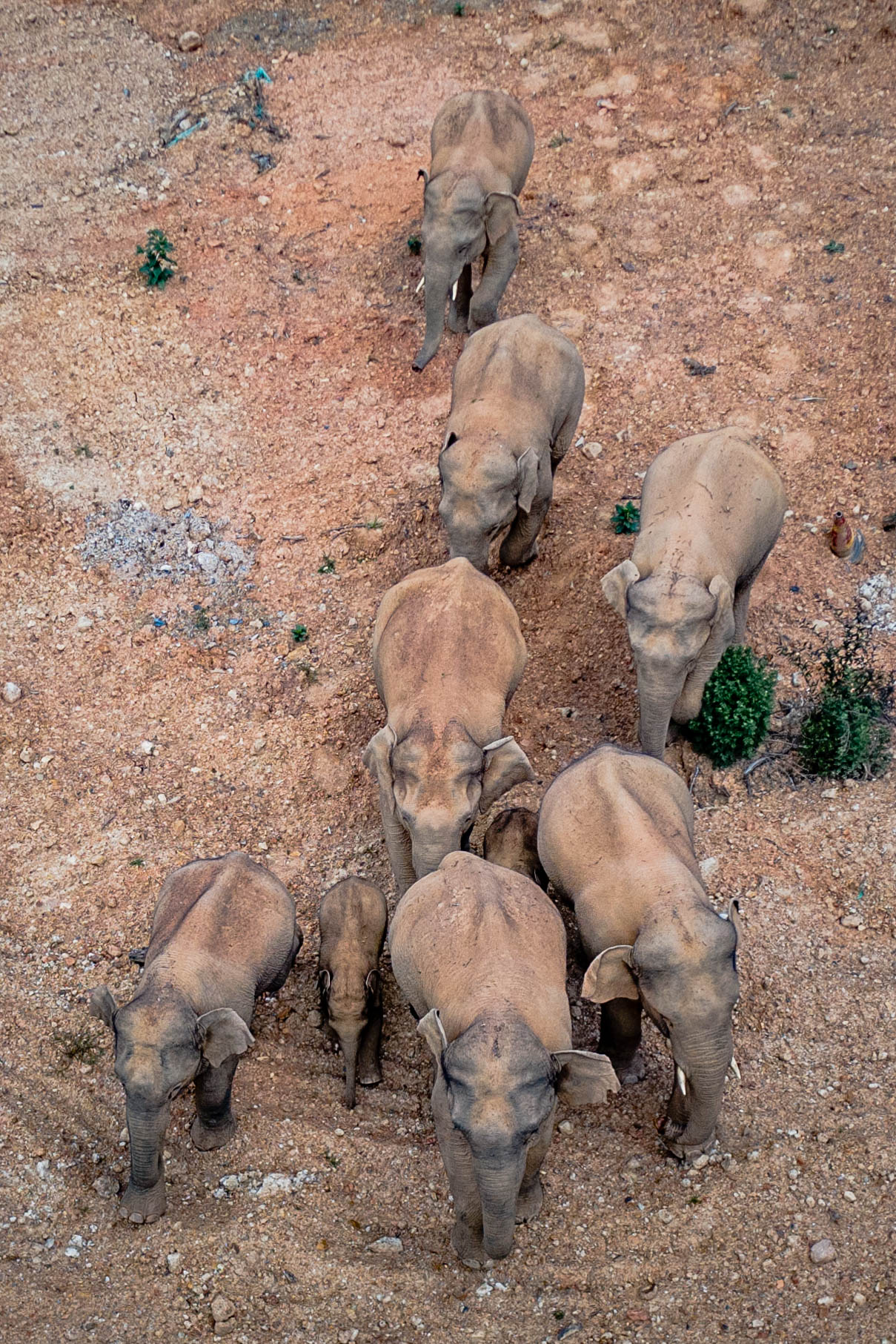 图为5月28日在云南省玉溪市峨山县境内拍摄的象群(无人机照片)。