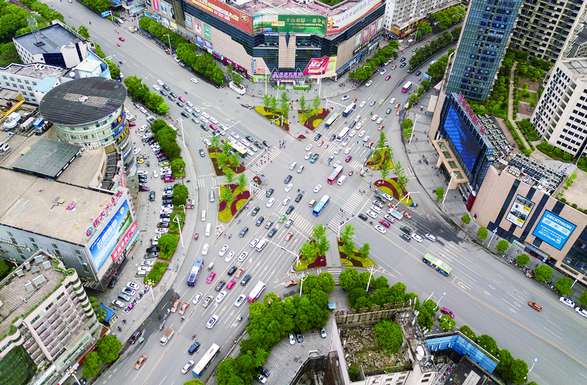 从空中俯瞰红旗广场。 株洲日报·掌上株洲记者/刘震/摄