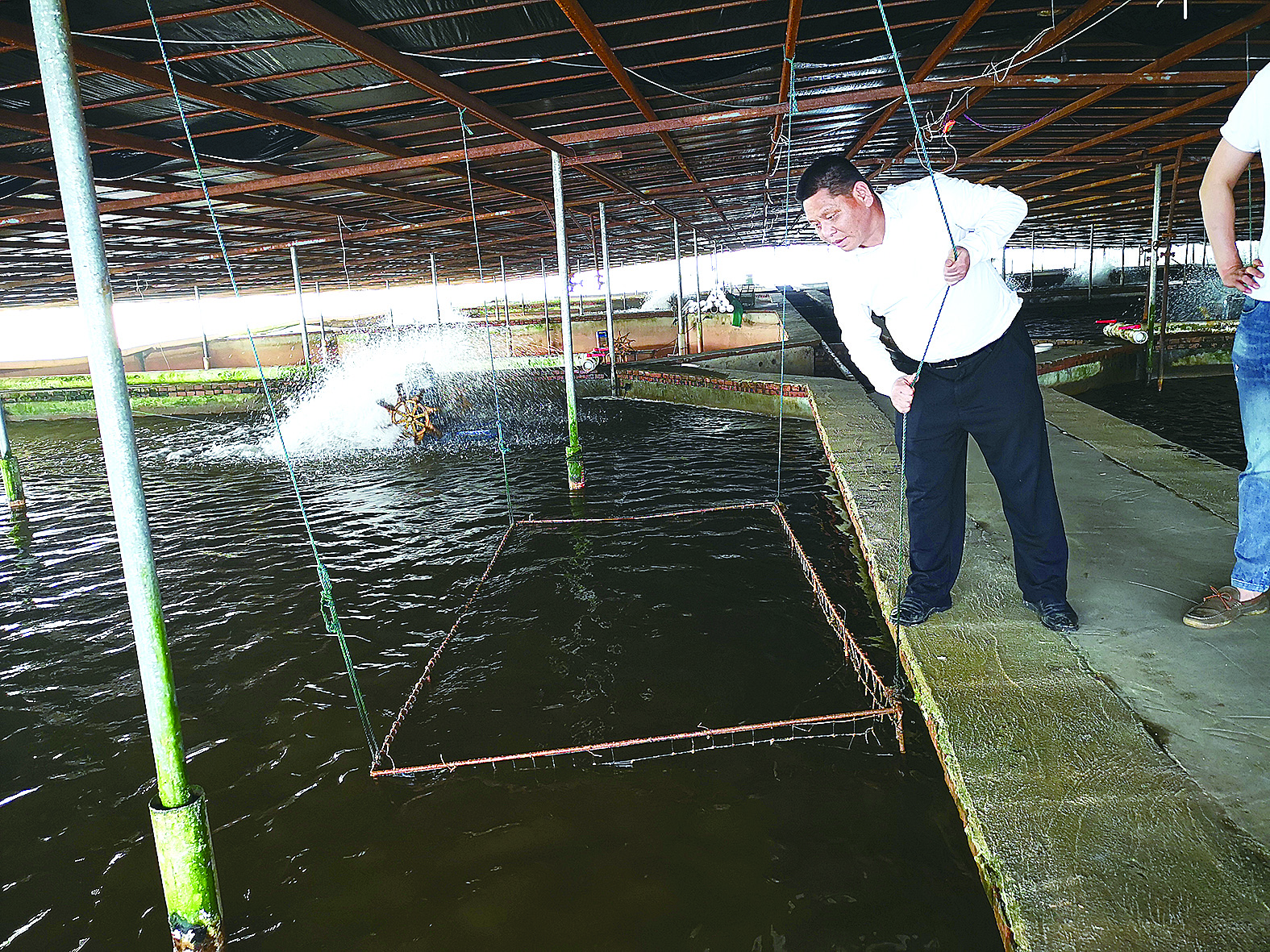 何伏桂在鳗鱼基地。叶新福 摄