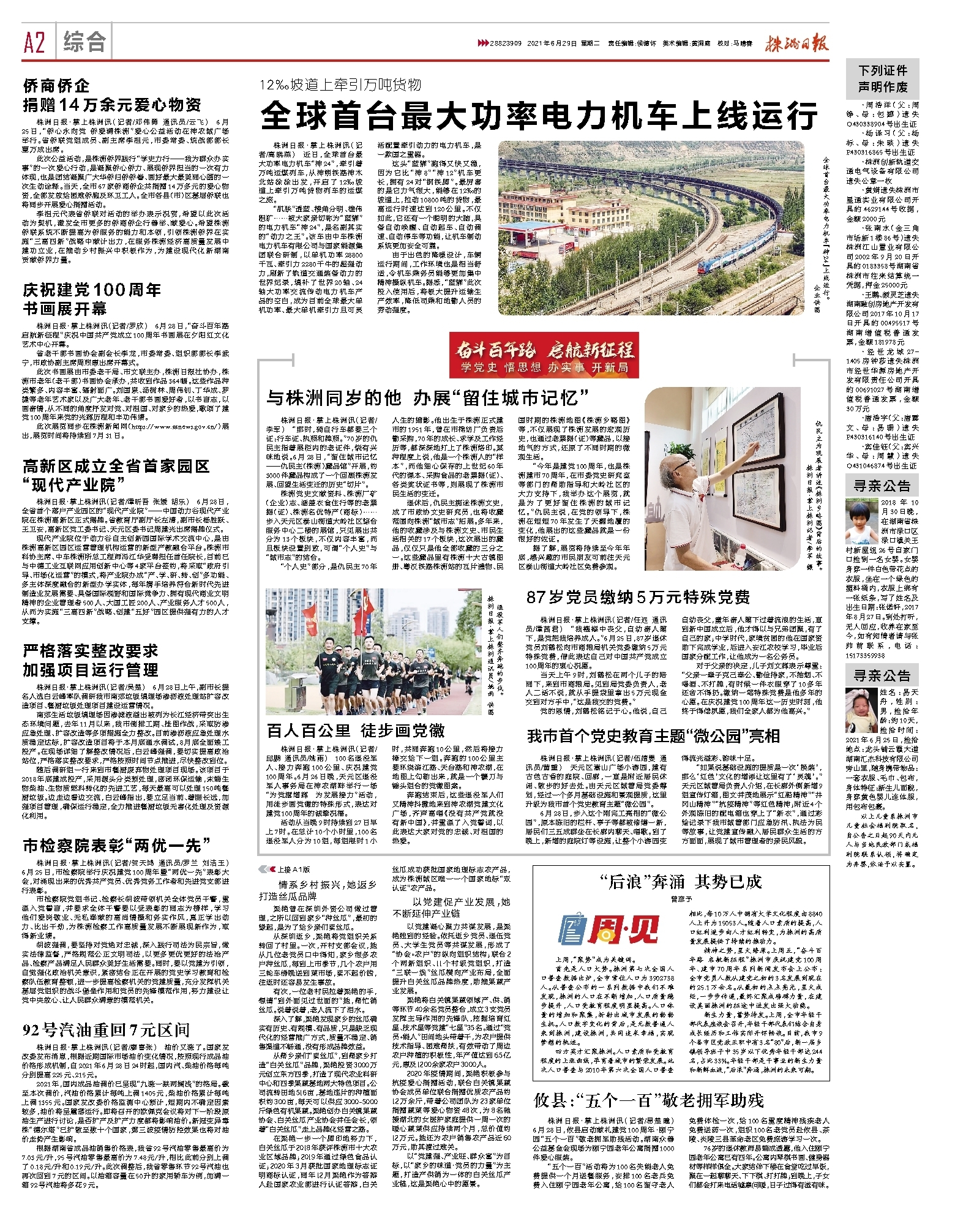第A1版:株洲日报电子报-6月29日
