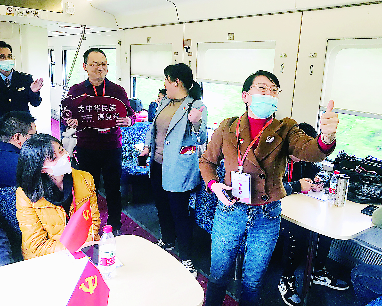 湘赣边红色专列上的“七个一”红色主题活动,备受学员欢迎。 株洲日报·掌上株洲记者/邹家虎 摄
