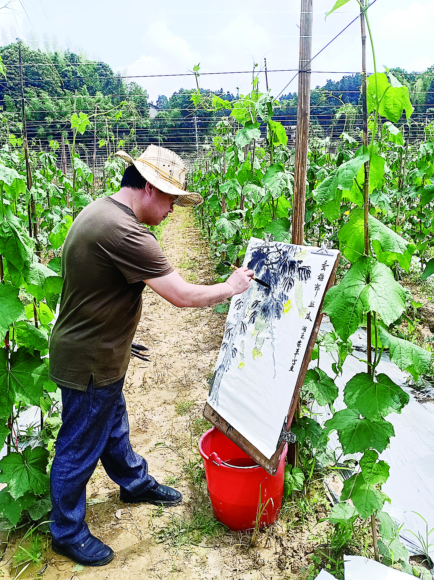 6月1日,芦淞区组织我市18名艺术家到白关镇丝瓜种植基地进行艺术采风活动,为即将举办的芦淞区首届“白关丝瓜节”进行艺术创作。当日,艺术家们在丝瓜藤下挥毫泼墨。在他们的眼里,如诗如画的乡村美景,亦美亦香的白关丝瓜成了最好的创作源泉。