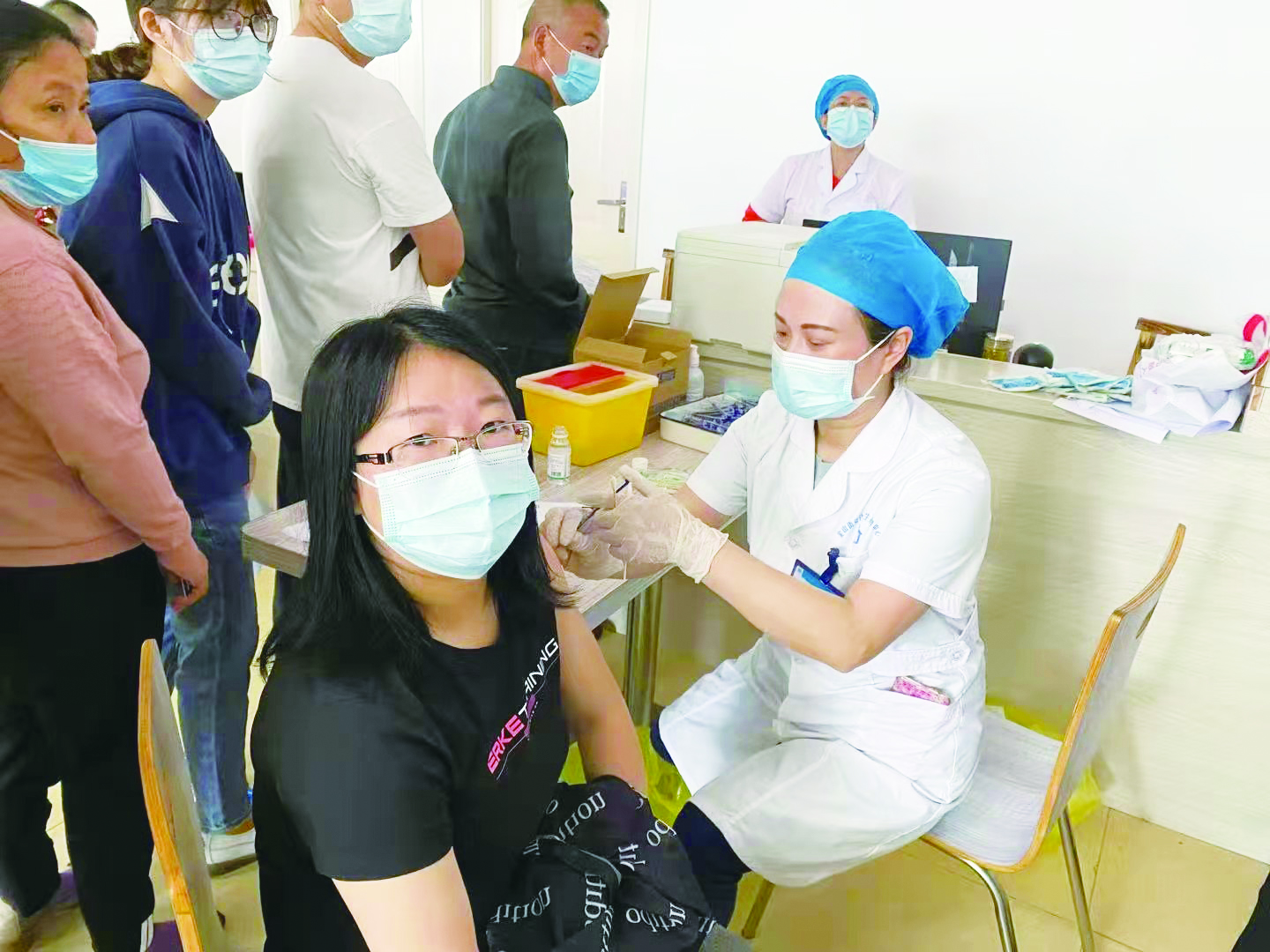 市国投集团下辖园区的企业员工们在“厂门口”接种疫苗。