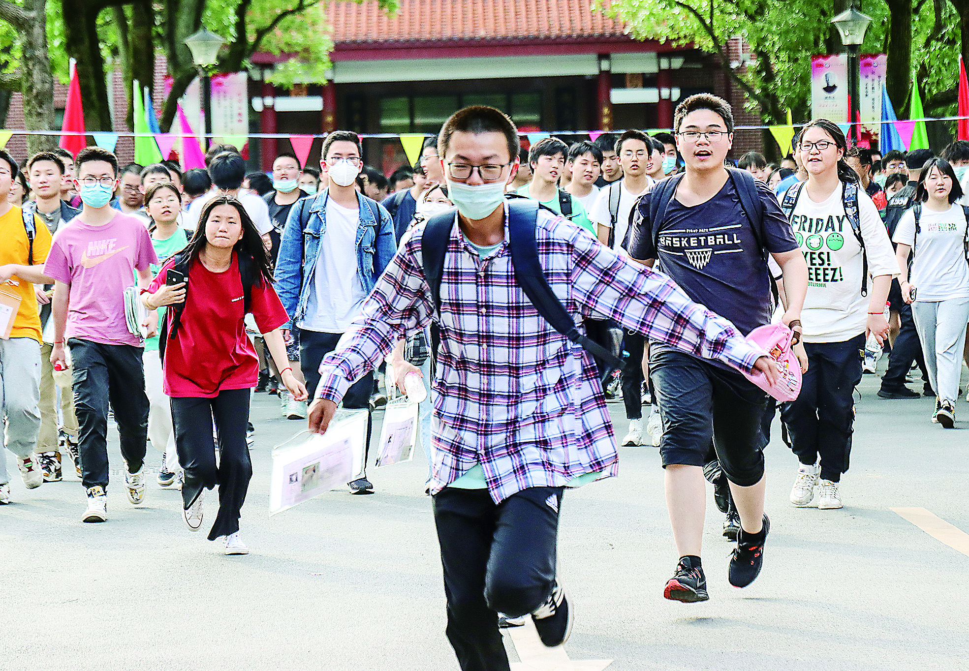 7日下午,市八中考点,考生们在完成数学考试后走出考场。 株洲日报·掌上株洲记者/刘震 摄