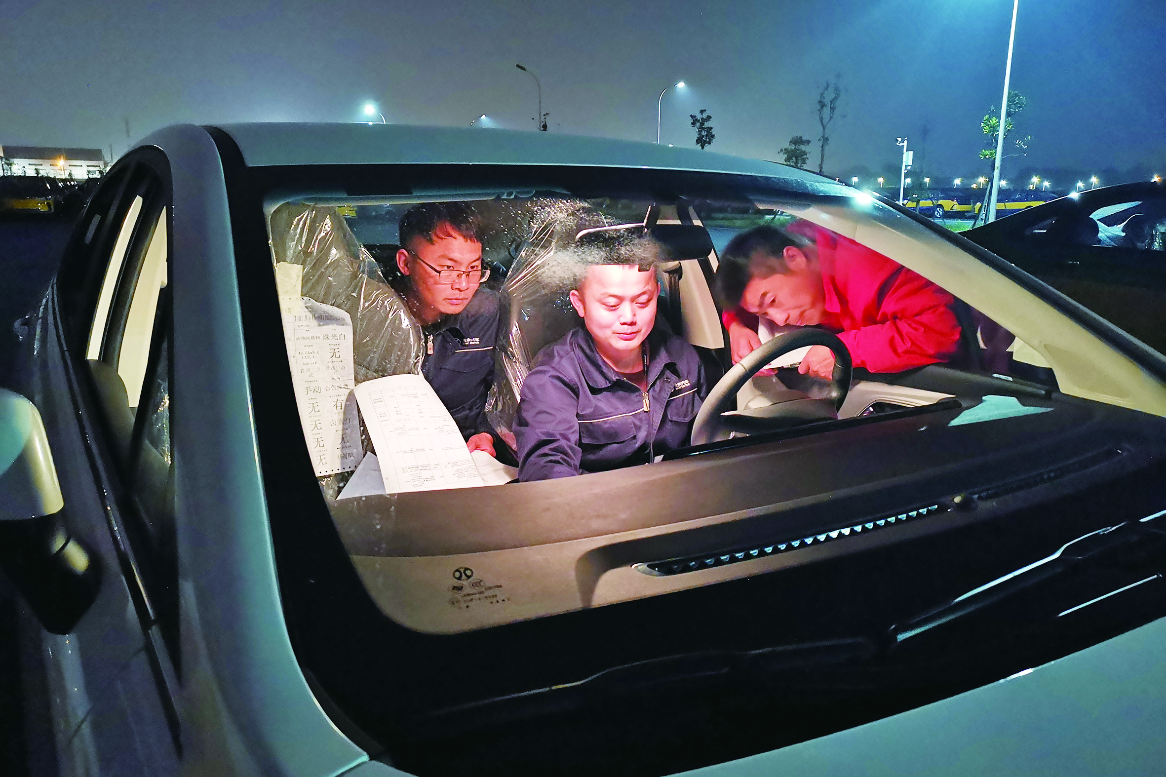 6月11日凌晨3时30分,北汽股份株洲分公司二工厂停车坪内灯火通明,工程师们在为试制车作测试。