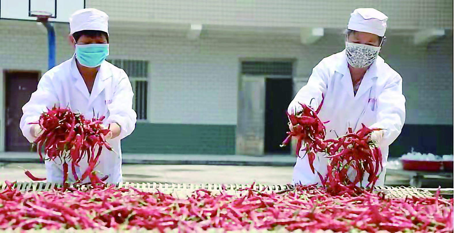 醴陵高峰桥合作社员工在晒玻璃椒(资料图)。 邓立平 供图