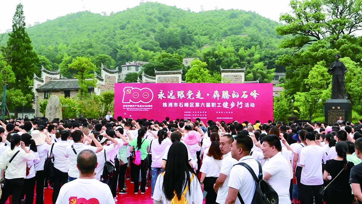 重温入党誓词,高唱红歌,阔步前行。6月18日,石峰区举行“永远跟党走·犇腾的石峰”健步行活动,在倡导全民健身的同时,推动党史学习教育走进职工身边、走进职工心里。