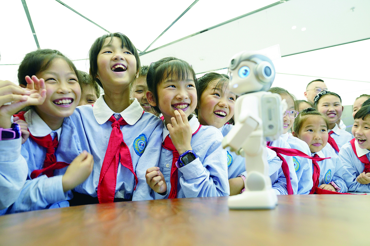 5月31日,重庆市北碚区云顶小学的孩子们在重庆两江机器人展示中心观看机器人表演。当日,重庆市北碚区水土街道万兴社区开展“走近机器人 欢乐过‘六一’”活动,组织水土街道云顶小学的孩子们来到重庆两江机器人展示中心,感受科技的魅力,迎接“六一”国际儿童节的到来。 新华社发(秦廷富 摄)