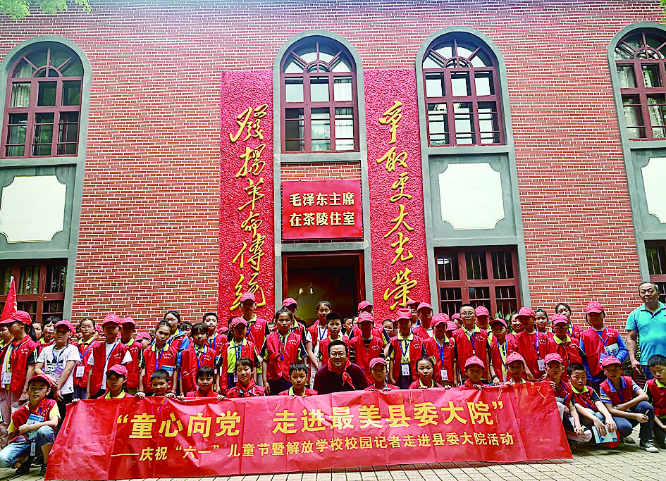 100名来自茶陵解放学校的校园记者走进茶陵县委大院,听红色革命故事、游红色景点、学党史。当天,茶陵县委常委、宣传部长罗峰给小记者们上了一堂生动的“微党课”,介绍茶陵“红色摇篮”和“最美县委大院”的由来。随后,小记者们分批参观了毛泽东主席在茶陵住室。