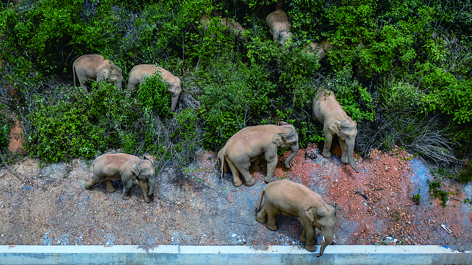 近日在云南省玉溪市峨山县境内拍摄的象群(无人机照片)。新华社发