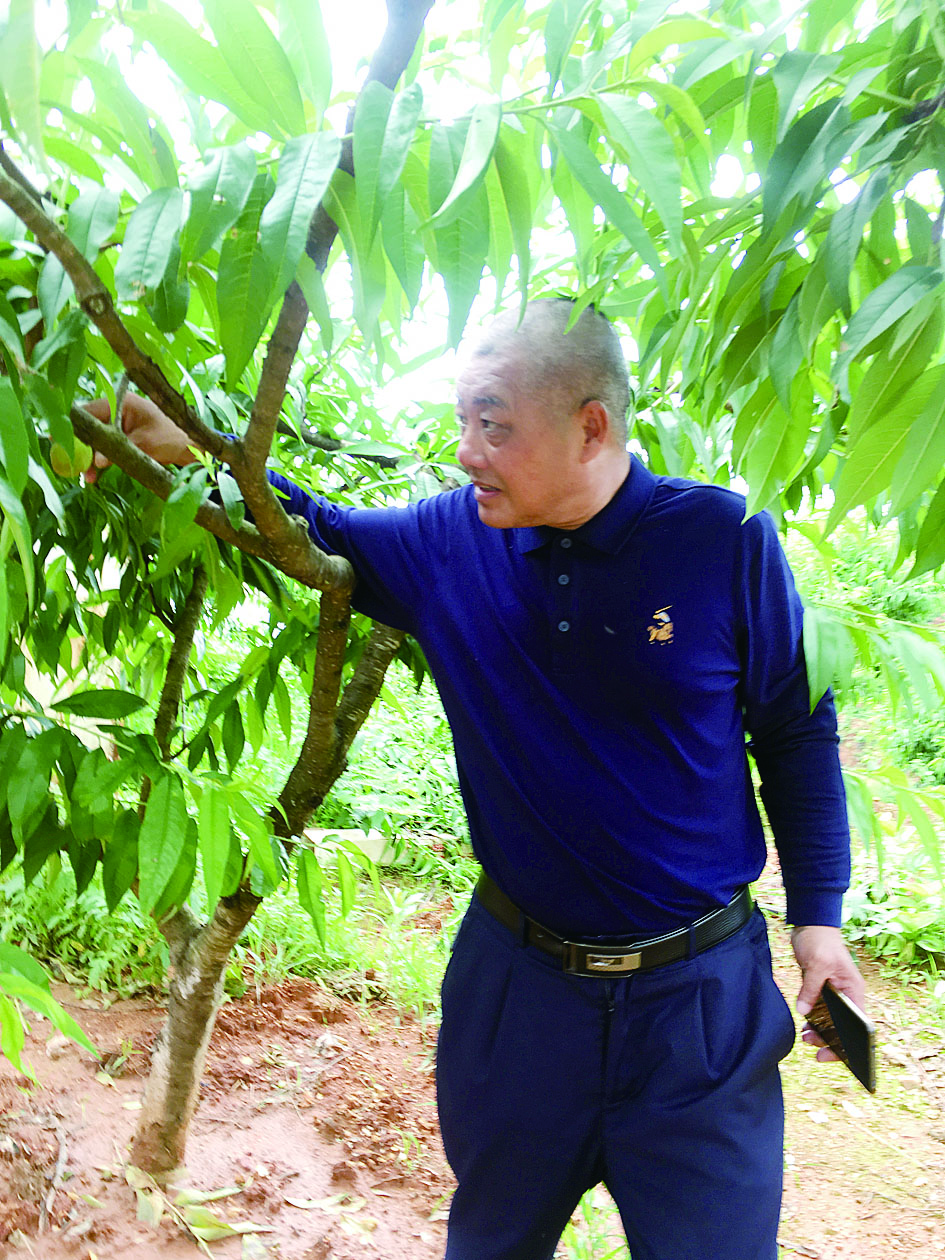 江平在产业园种植区查看黄桃长势。 株洲日报·掌上株洲记者/刘毅 摄