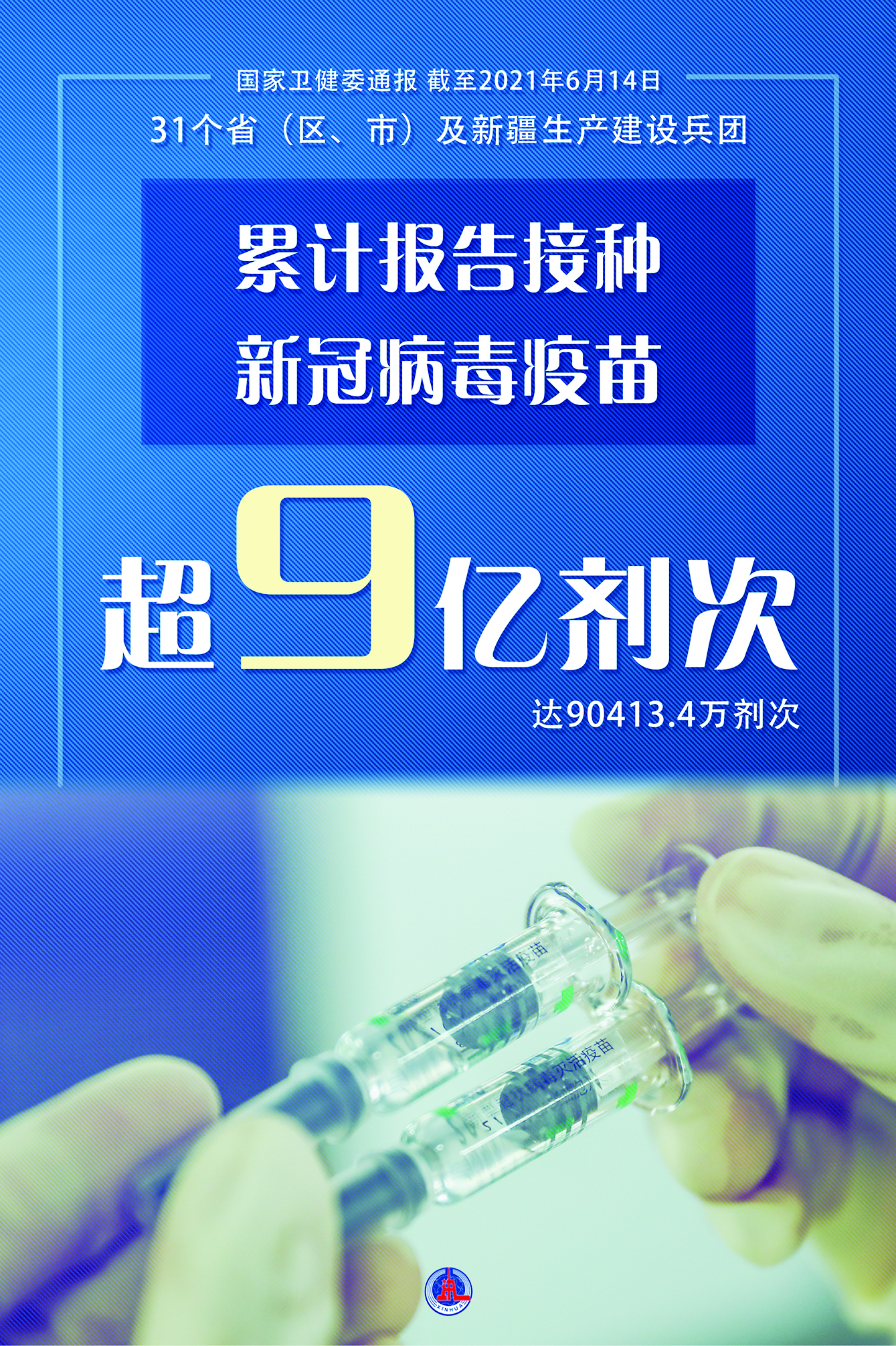 国家卫健委6月15日通报,全国新冠疫苗接种超过9亿剂次,距离超8亿剂次仅过去6天。专家表示,我国现有疫苗对变异病毒有可观保护效果,接种疫苗仍是预防新冠肺炎的有效办法。积极接种疫苗,“免疫长城”还需你我再添一把力。