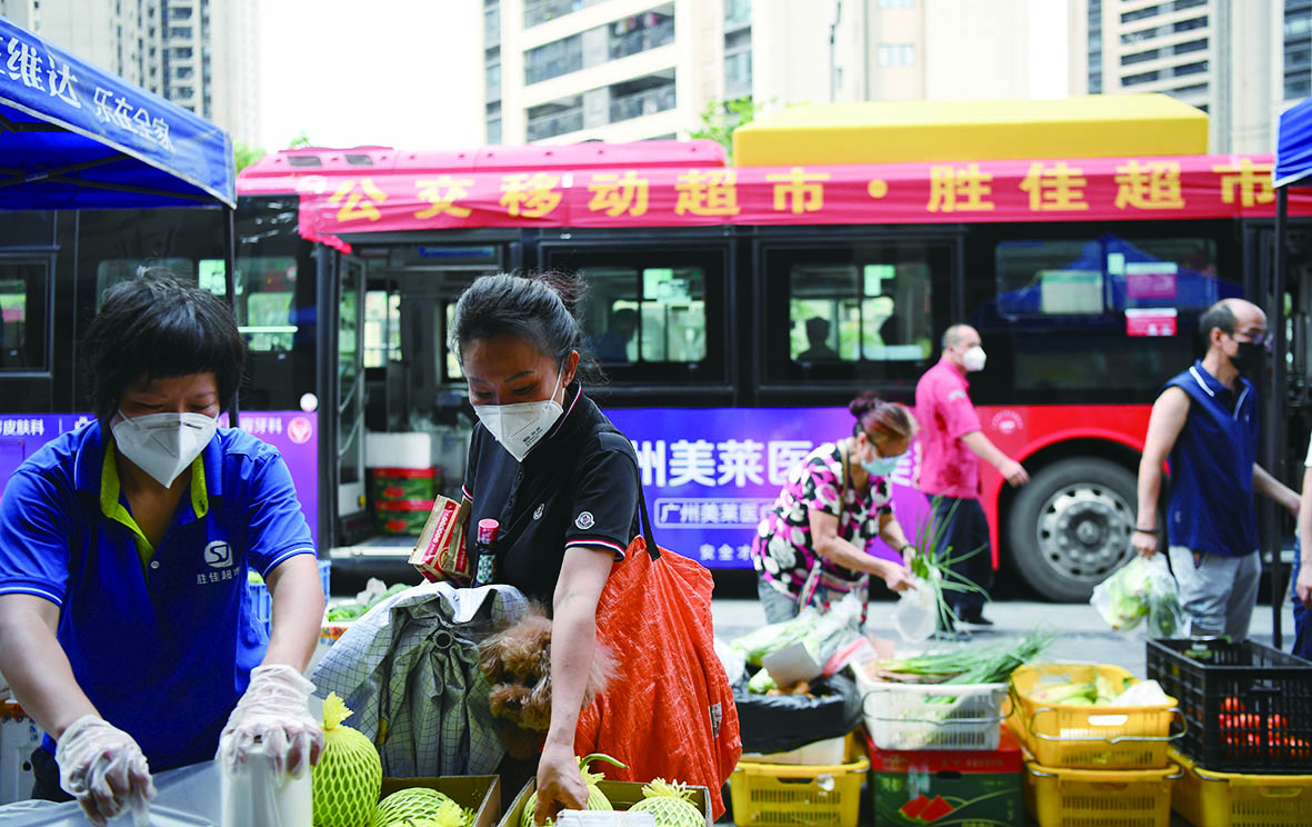 连日来,广州推出公交移动超市服务,用公交车把食品和日用品送进疫情管控区,方便居民在家门口购物。