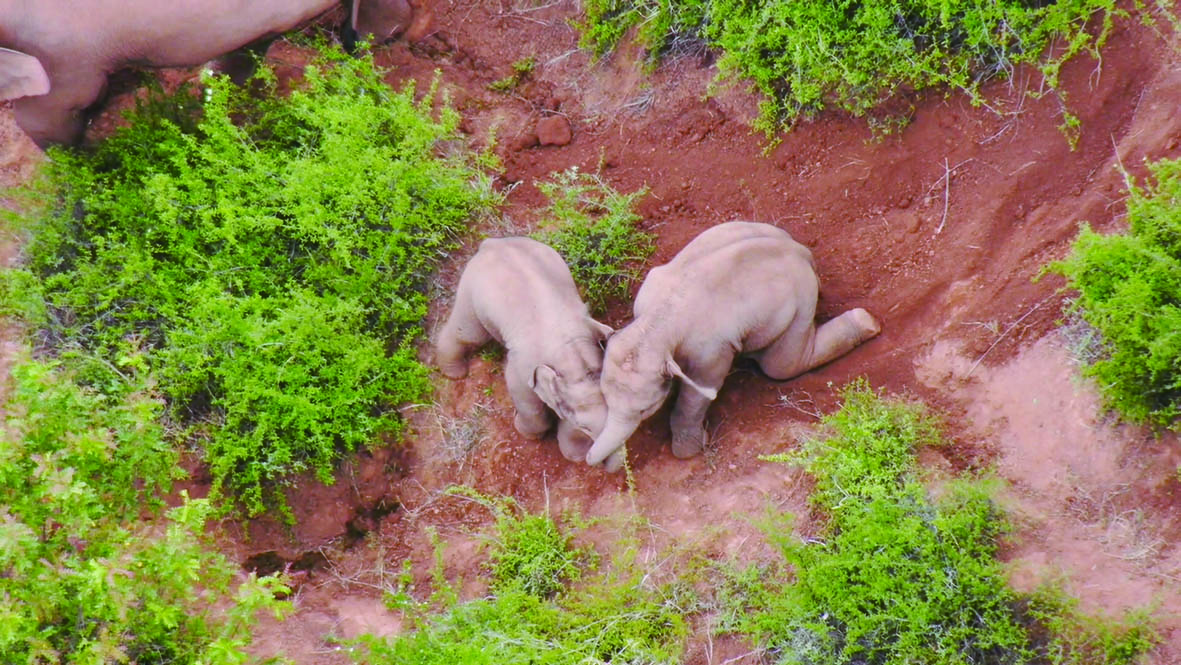 6月17日在玉溪市易门县十街乡拍摄的小象嬉戏打闹瞬间(无人机视频截图)。