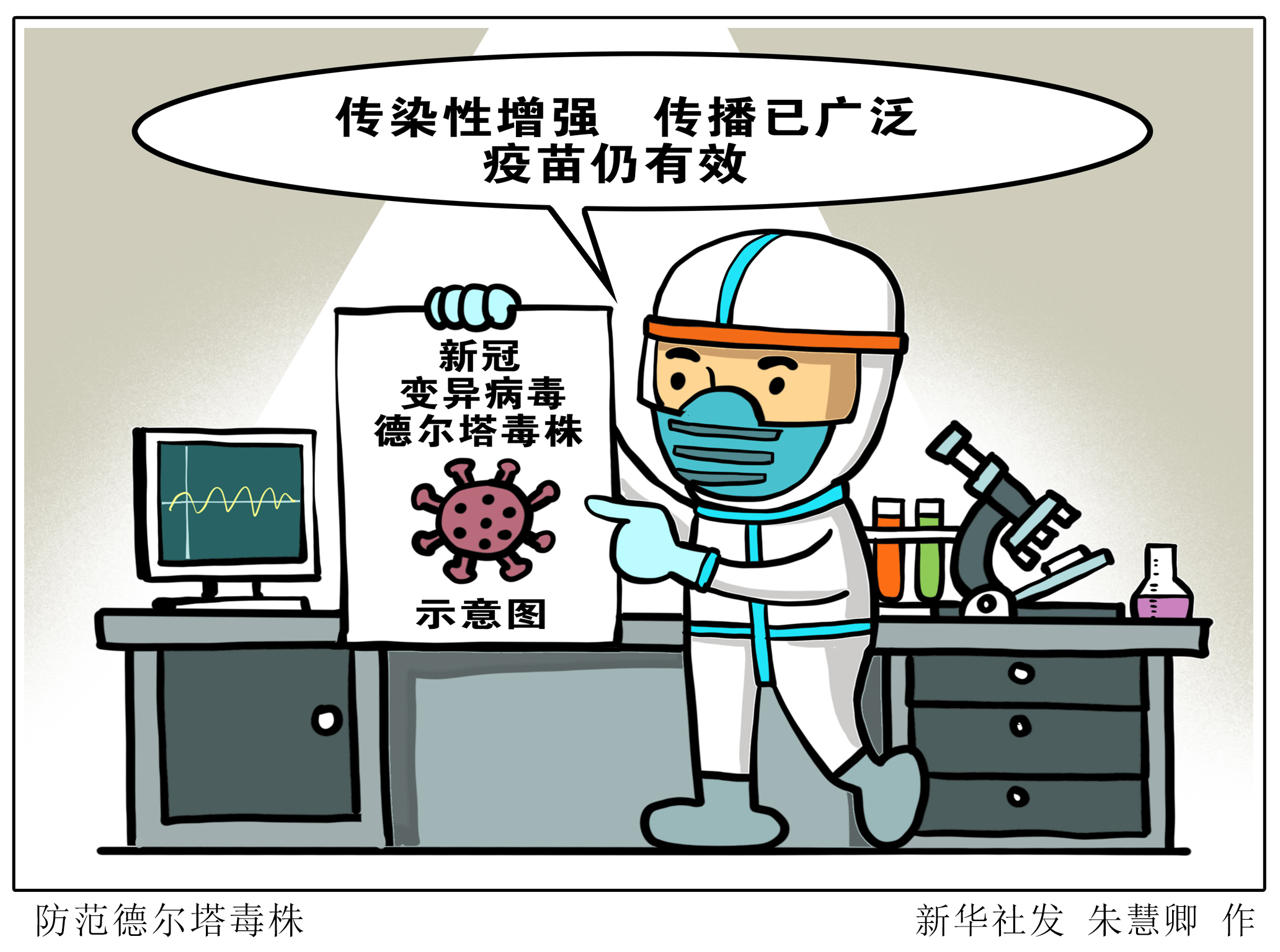 漫画:防范德尔塔毒株 新华社发 朱慧卿 作