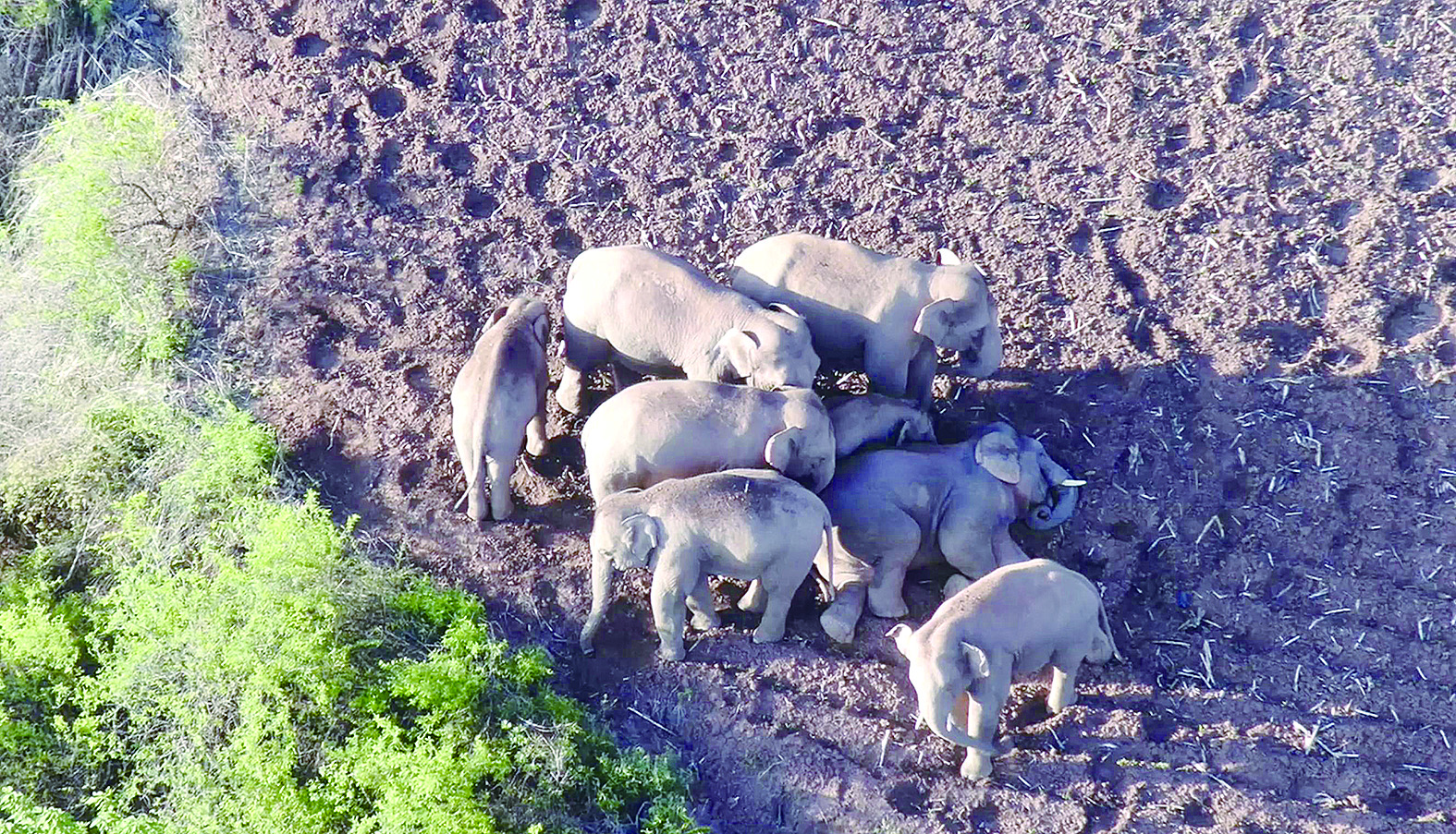 6月20日在云南省玉溪市峨山县拍摄的象群(无人机视频截图)。 新华社发(云南省森林消防总队供图)