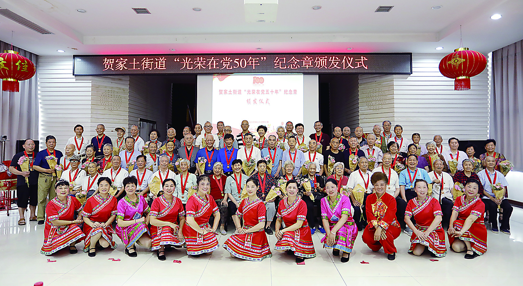 首次颁发“光荣在党50年”纪念章,是中国共产党成立100周年庆祝活动的重要组成部分。贺家土街道共有324名老党员获此项纪念章。