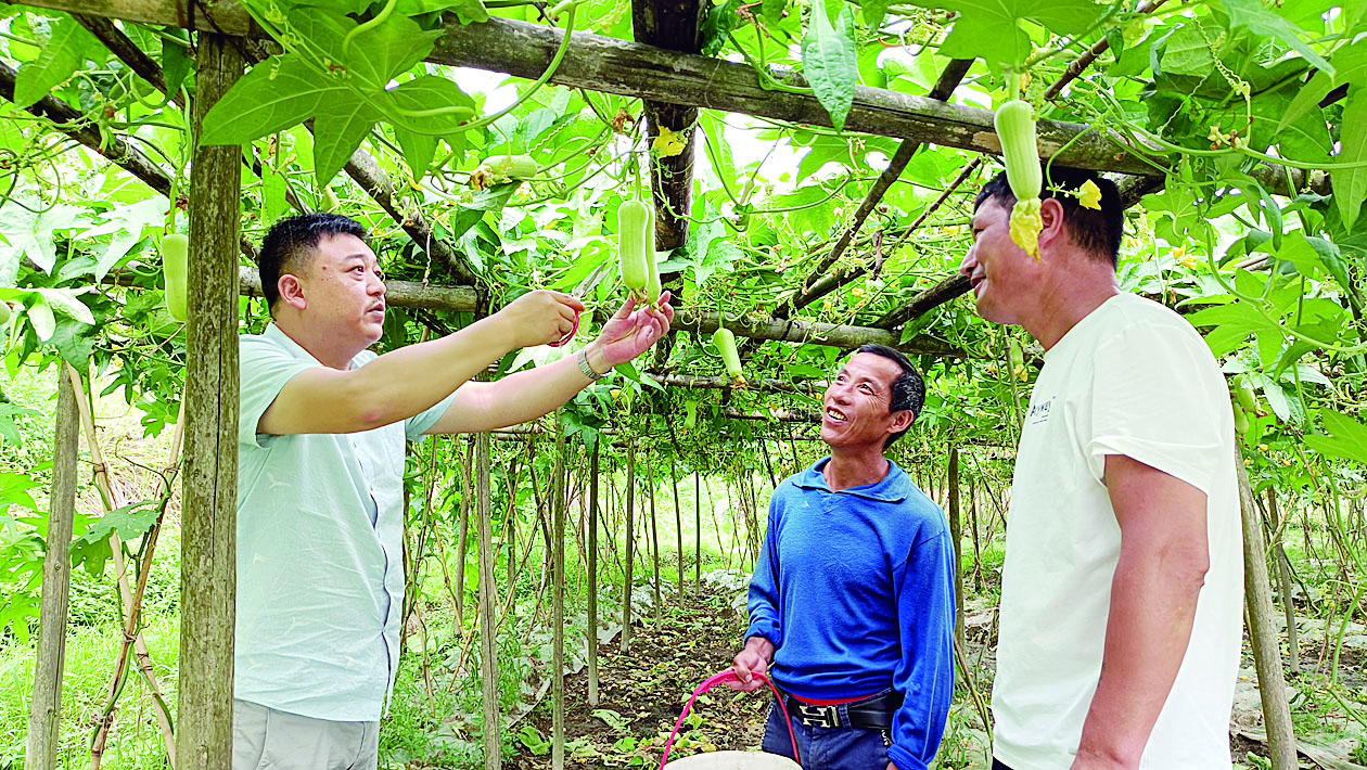 选青村党员下地与丝瓜种植户交流经验 杨凌凌 摄