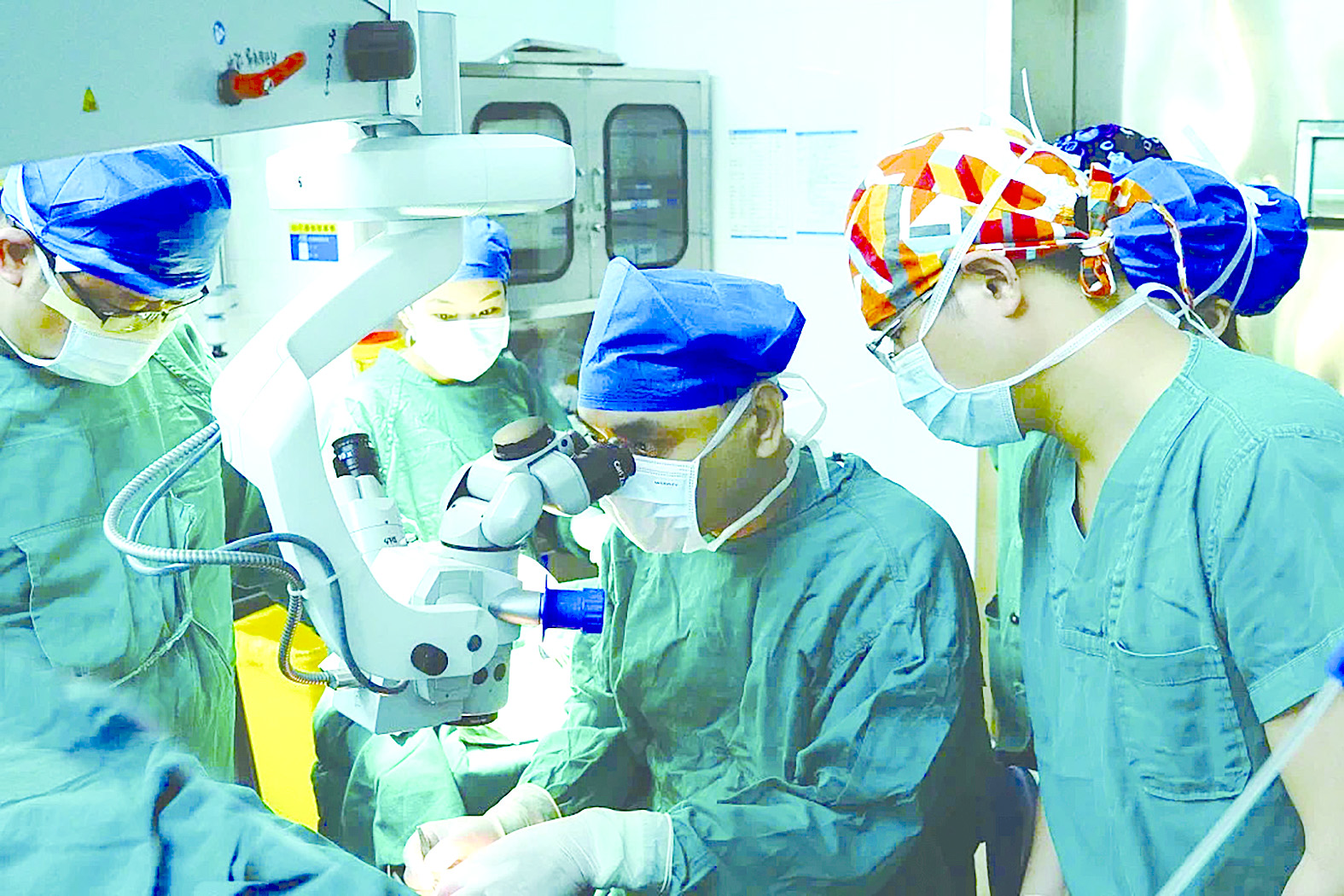 在家人陪伴下,患者来到省直中医院寻求帮助。接诊他的省直中医院眼科医学中心首席专家、湖南省知名角膜移植专家邓志宏教授认为,谭先生角膜白斑已久,想要恢复视力只能实施角膜移植术。征得患者本人同意后,省直中医院眼科医学中心专家团队的邓志宏教授,主任医师代敏、肖哲夫,为患者制定了严谨科学的治疗方案,决定实施异体角膜移植术。6月6日,第26个全国“爱眼日”这一天,在邓志宏的指导下,该中心专家团队经过一个半小时的紧张工作,取得了这次手术的圆满成功。谭先生终于能再次看清这个世界了。