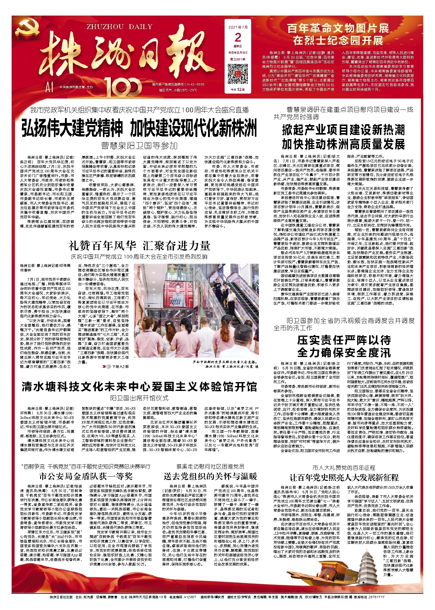 株洲日报·掌上株洲讯(记者/陈正明 通讯员/陈伟华) 6月30日,“党和人民心连心”株洲市人大常委会机关庆祝中国共产党成立100周年文艺演出暨“七一”表彰大会举行。市委副书记胡长春出席,市人大常委会党组书记、副主任彭建忠致辞。