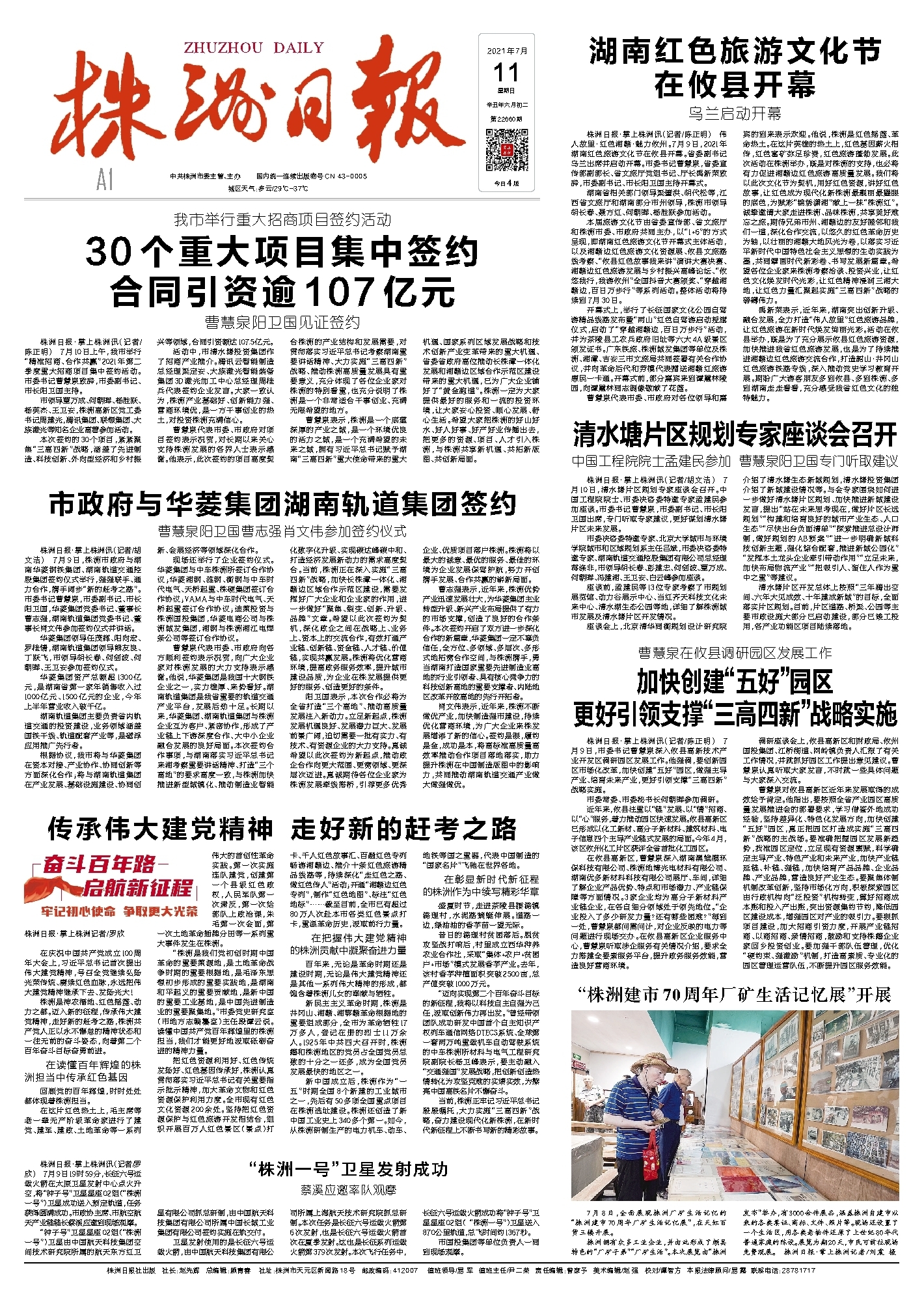 株洲日报·掌上株洲讯(记者/罗欣) 7月9日19时59分,长征六号运载火箭在太原卫星发射中心点火升空,将“钟子号”卫星星座02组(“株洲一号”)卫星成功送入预定轨道,任务获得圆满成功。市政协主席、市航空航天产业链链长蔡溪应邀到现场观摩。