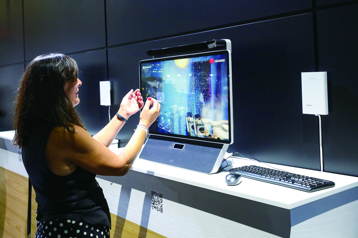 2021世界移动通信大会于6月28日至7月1日在西班牙巴塞罗那举行。5G技术仍是当下热门的话题,5G网络的普及为人们进一步拓宽了想象的边界,其所衍生的应用已开始延伸到生活的各个层面。图为6月29日,在西班牙巴塞罗那,观众在世界移动通信大会法国电信公司展厅体验5G技术的“低延迟”。