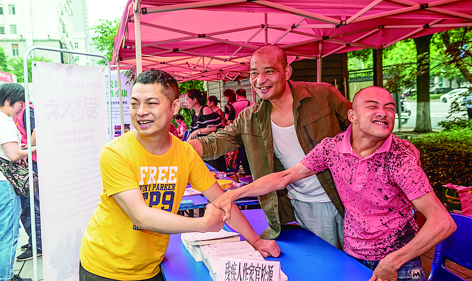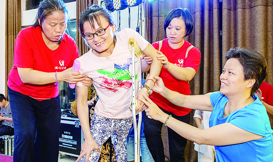 扶助残疾人上台表演才艺。