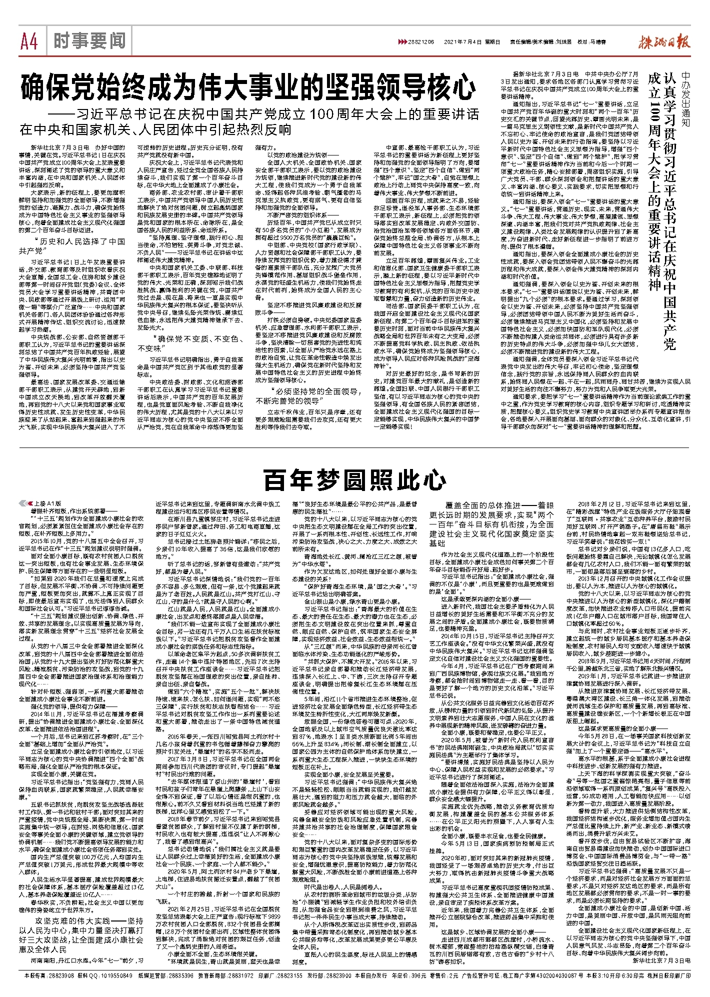通知指出,习近平总书记“七一”重要讲话,立足中国共产党百年华诞的重大时刻和“两个一百年”历史交汇的关键节点,回望光辉历史、擘画光明未来,是一篇马克思主义纲领性文献,是新时代中国共产党人不忘初心、牢记使命的政治宣言,是我们党团结带领人民以史为鉴、开创未来的行动指南。要坚持以习近平新时代中国特色社会主义思想为指导,增强“四个意识”、坚定“四个自信”、做到“两个维护”,把学习贯彻“七一”重要讲话精神作为当前和今后一个时期一项重大政治任务,精心安排部署,周密组织实施,引导广大党员、干部、群众深刻领会和把握讲话的重大意义、丰富内涵、核心要义、实践要求,切实把思想和行动统一到讲话精神上来。