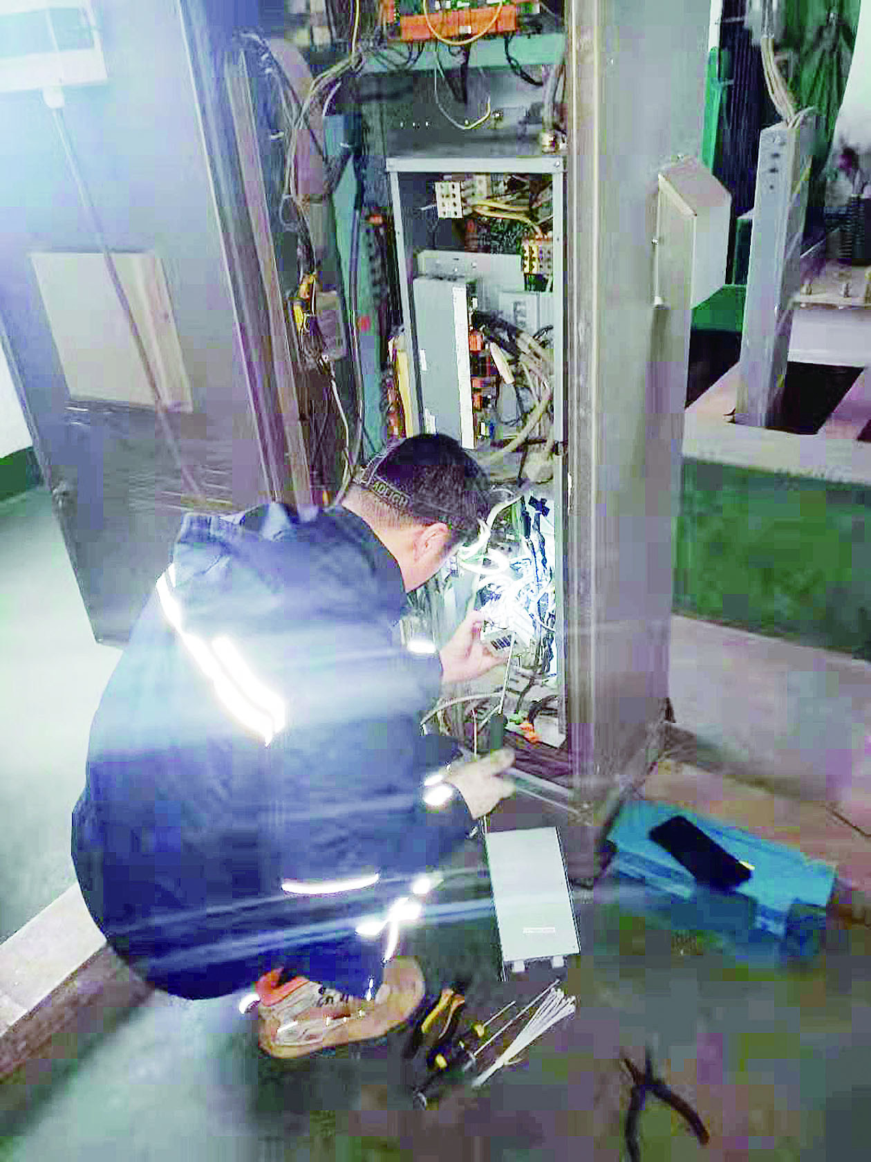 《 株洲某小区内,维修人员正在修理电梯。 吴楚/摄