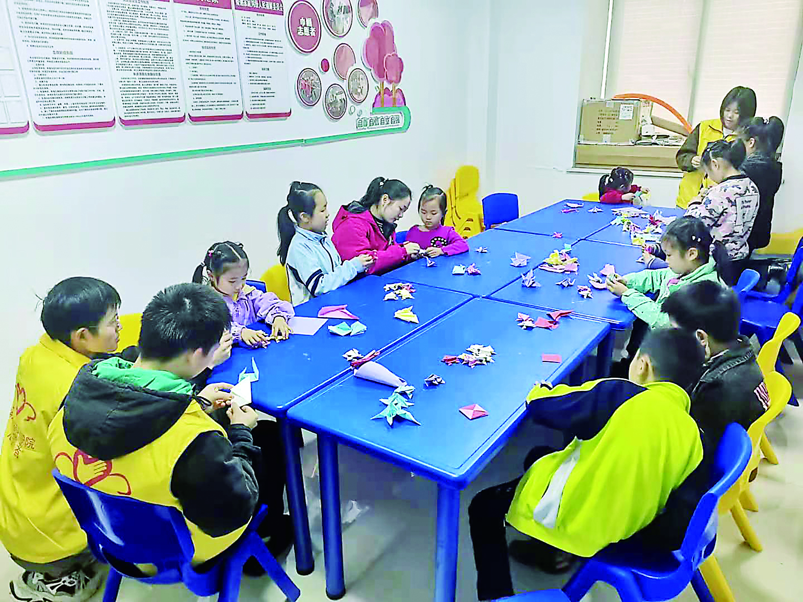▲在龙头铺街道龙升社区“儿童之家”,孩子们正在做手工。黄闻 供图