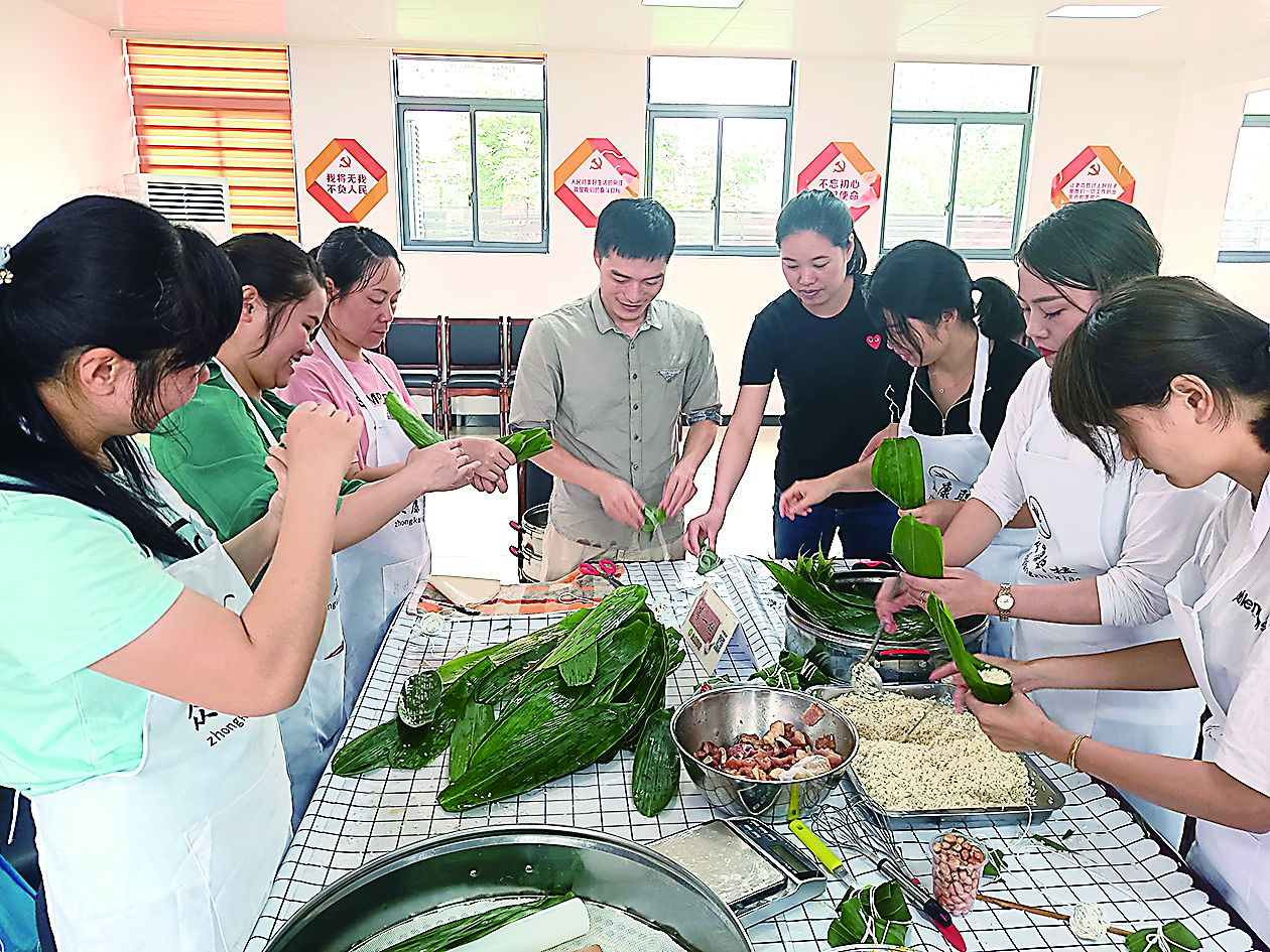 ▲学林街道大丰社区党员、居民一起包粽子“迎端午·庆七一”。 贺鸿荟 供图