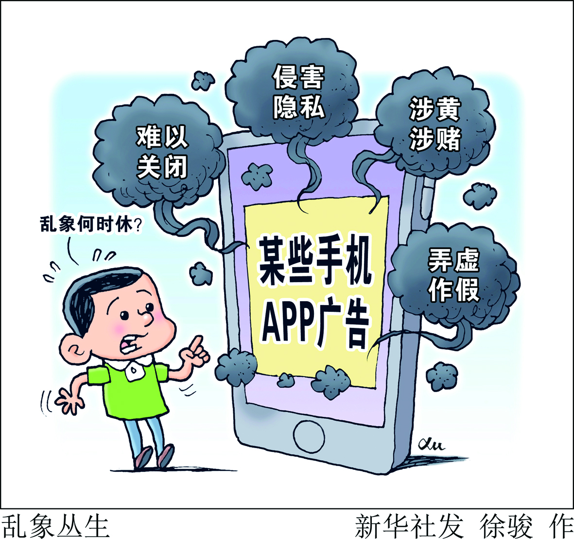 记者调查发现,当前手机App广告难以关闭、侵害隐私、涉黄涉赌、弄虚作假等问题仍屡禁不止,治理力度不能减弱。