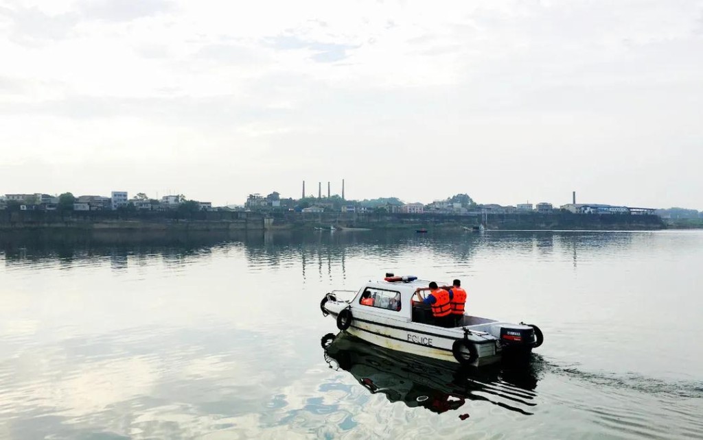 7月6日傍晚,正是游泳高峰期,渌口区公安分局水上派出所民辅警在湘江巡航,用高音喇叭向玩水的人群进行防溺水宣传。6月中旬起,渌口区公安分局水上派出所对湘、渌两江实行常态化巡逻,每天下午民辅警都会驾驶巡逻艇,在湘江株洲航电枢纽下游至渌江城区段沿线12公里进行巡逻,对野泳的市民和带小孩在江边玩耍的市民进行劝返,提醒大家安全消暑,快乐游水。图为巡逻现场。