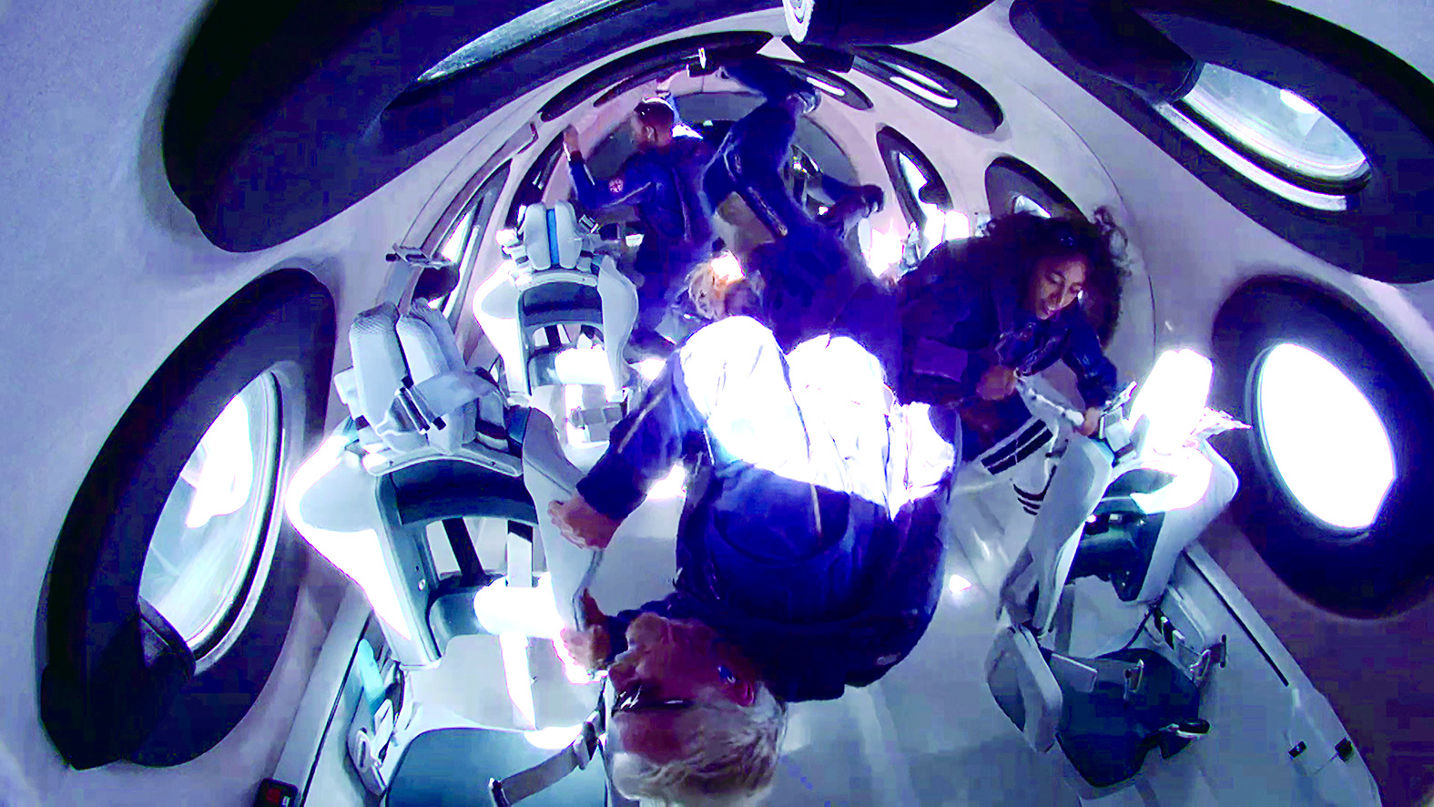 英国维珍银河公司11日发布的图片显示“团结”号太空船成员处于失重状态。 新华社发