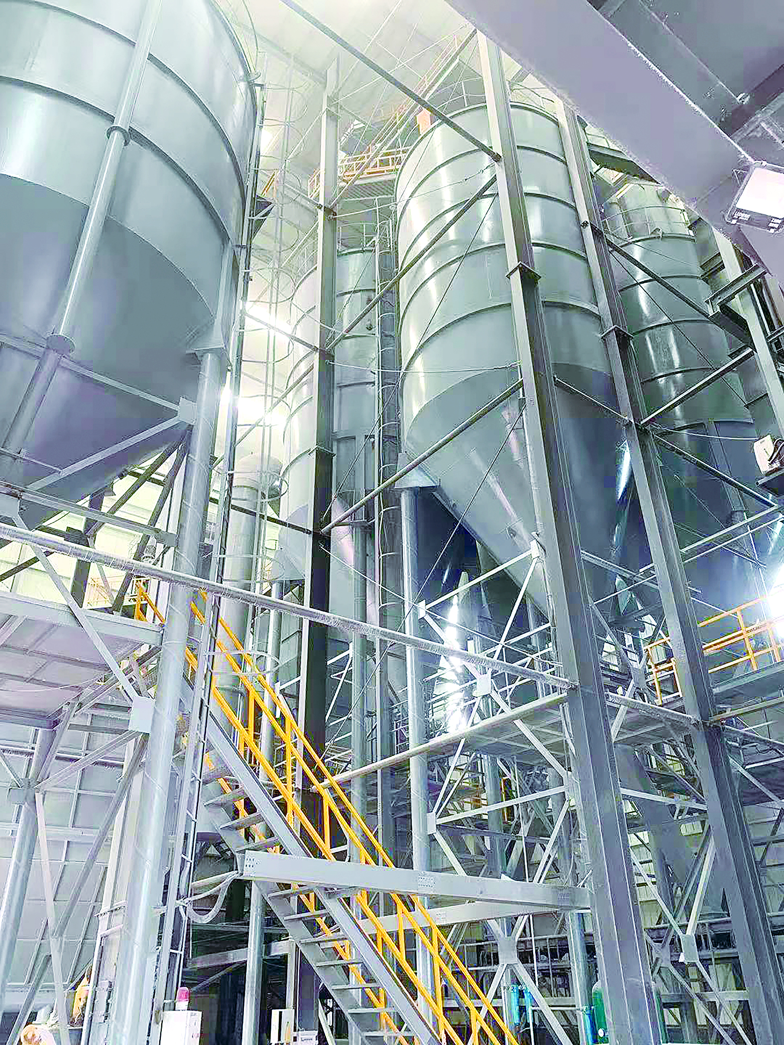 云龙强力新型建材有限公司预拌砂浆生产车间内的原材料储存仓。吴楚/摄