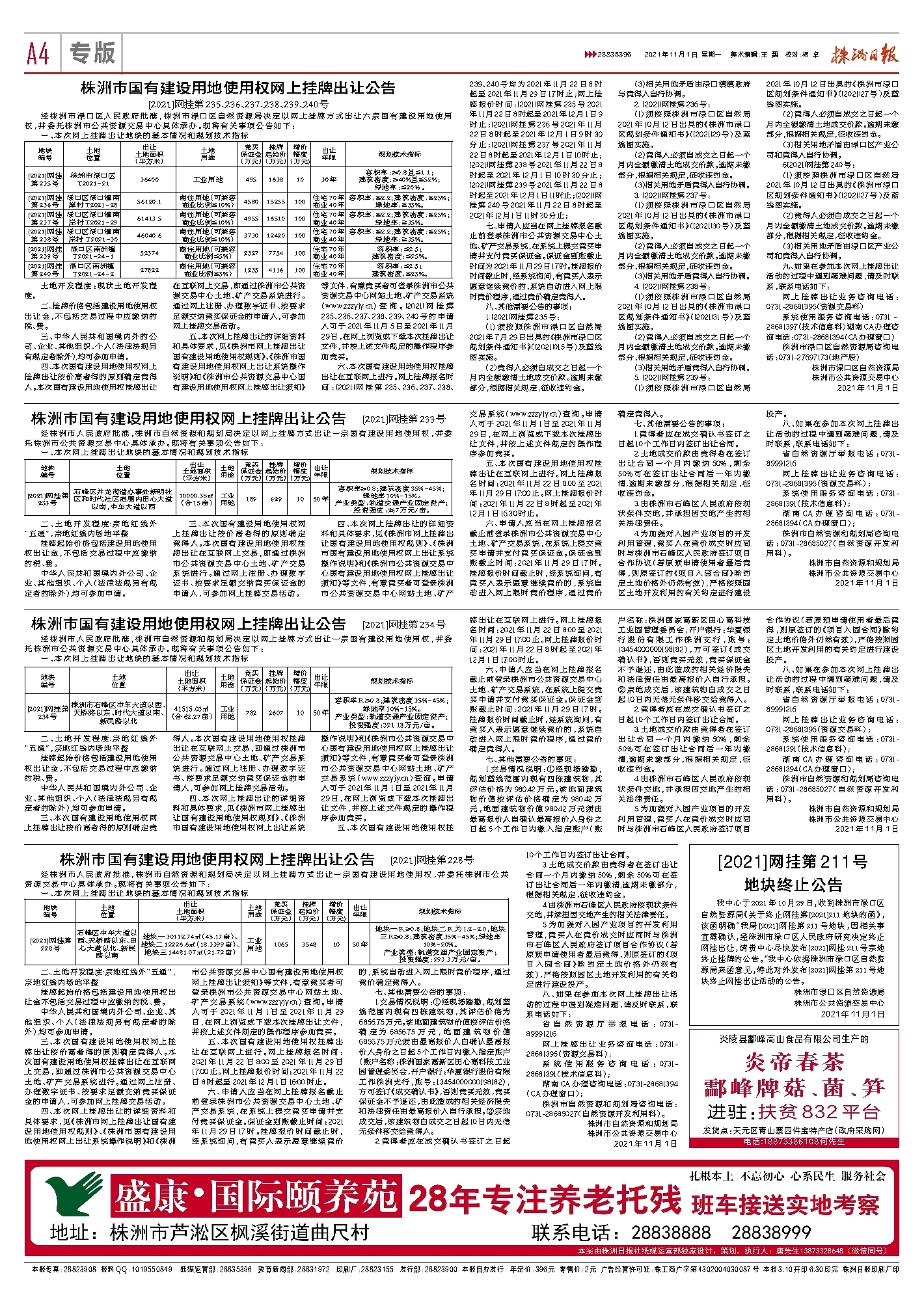 株洲市国有建设用地使用权网上挂牌出让公告 [2021]网挂第234号