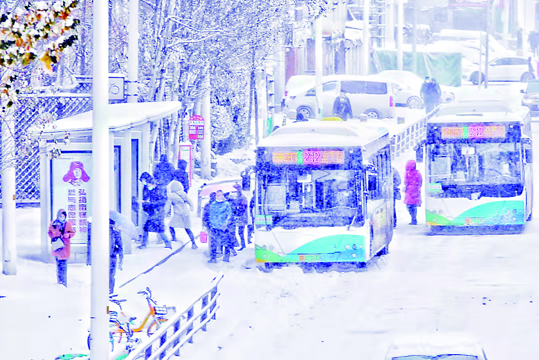 中车电动C10客车在沈阳雪中畅行。 企业供图