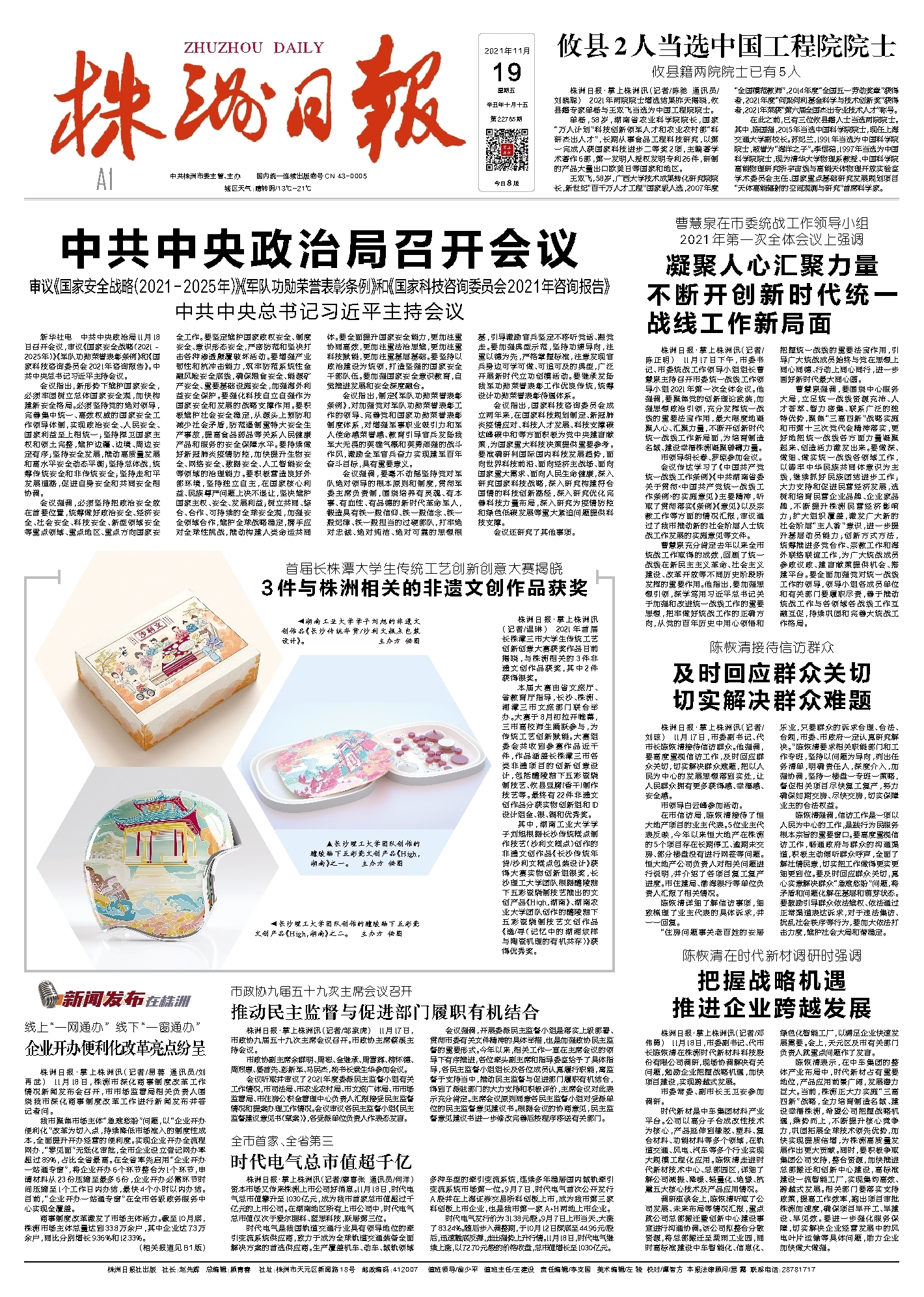 时代电气是我国轨道交通行业具有领导地位的牵引变流系统供应商,致力于成为全球轨道交通装备全面解决方案的首选供应商。生产覆盖机车、动车、城轨领域多种车型的牵引变流系统,连续多年稳居国内城轨牵引变流系统市场第一位。9月7日,时代电气首次公开发行A股并在上海证券交易所科创板上市,成为我市第三家科创板上市企业,也是我市第一家A+H两地上市企业。