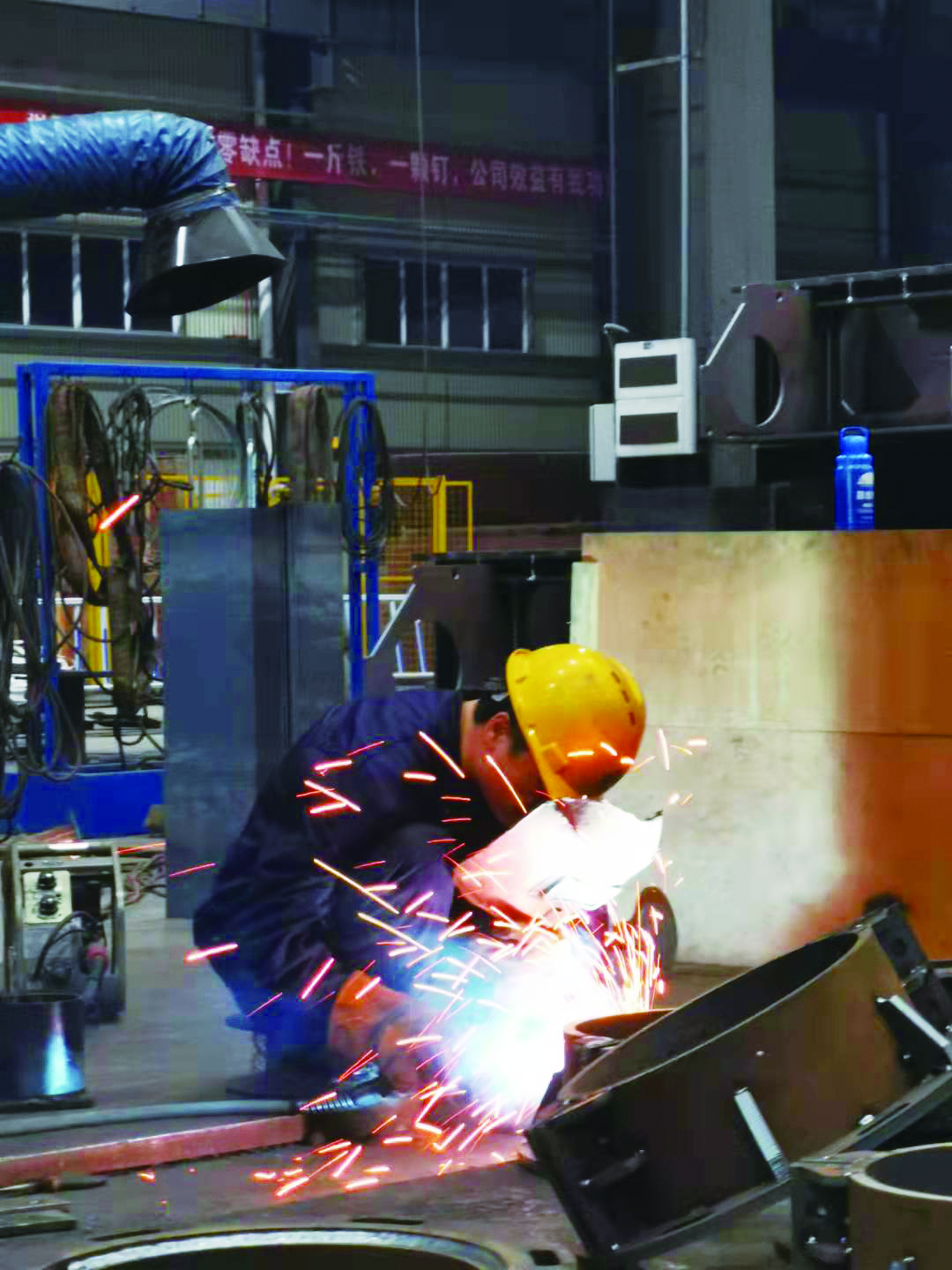 火炬工业炉车间内焊花四溅。 廖喜张 摄