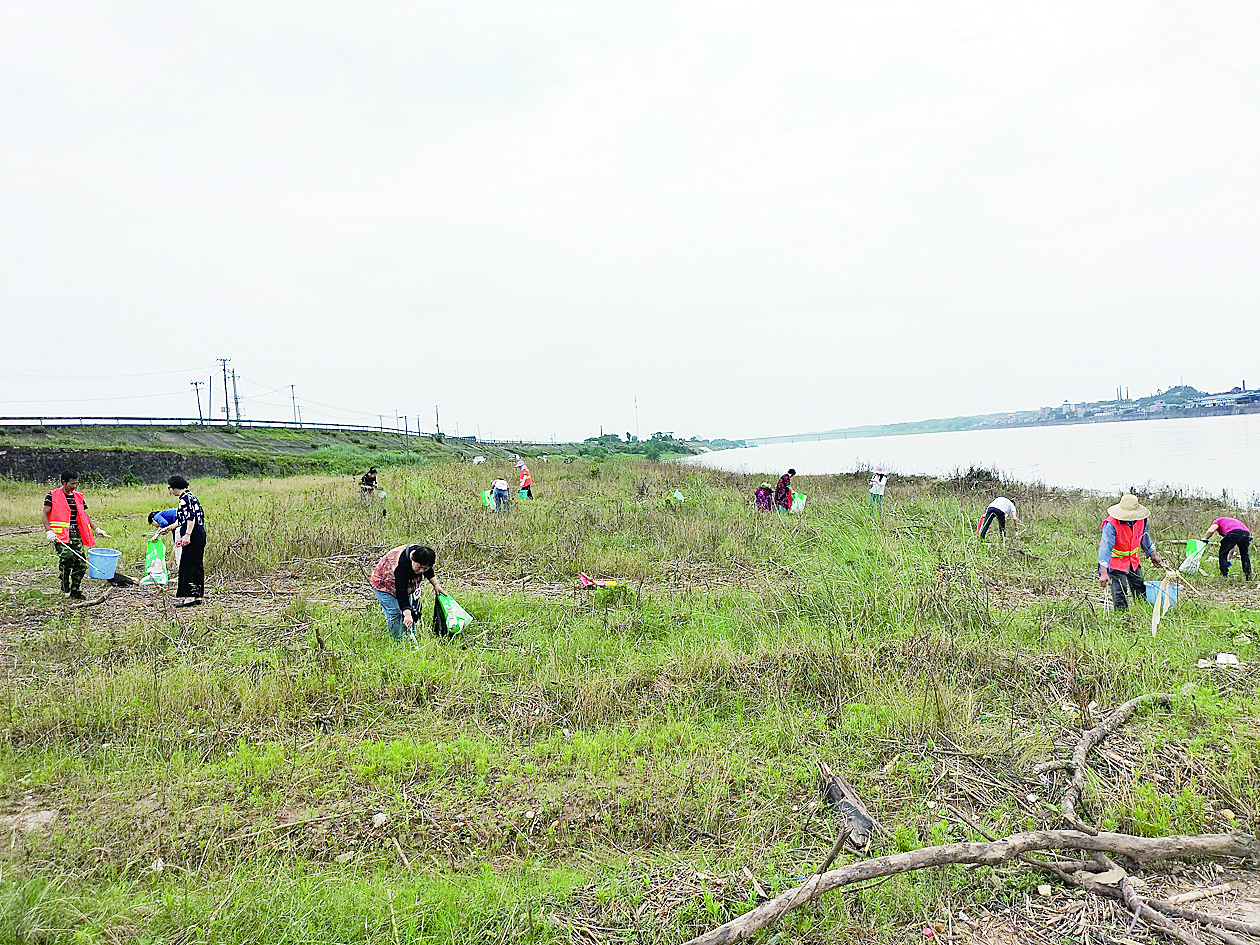 党员带领群众清理湘江渌口段河岸垃圾。通讯员供图