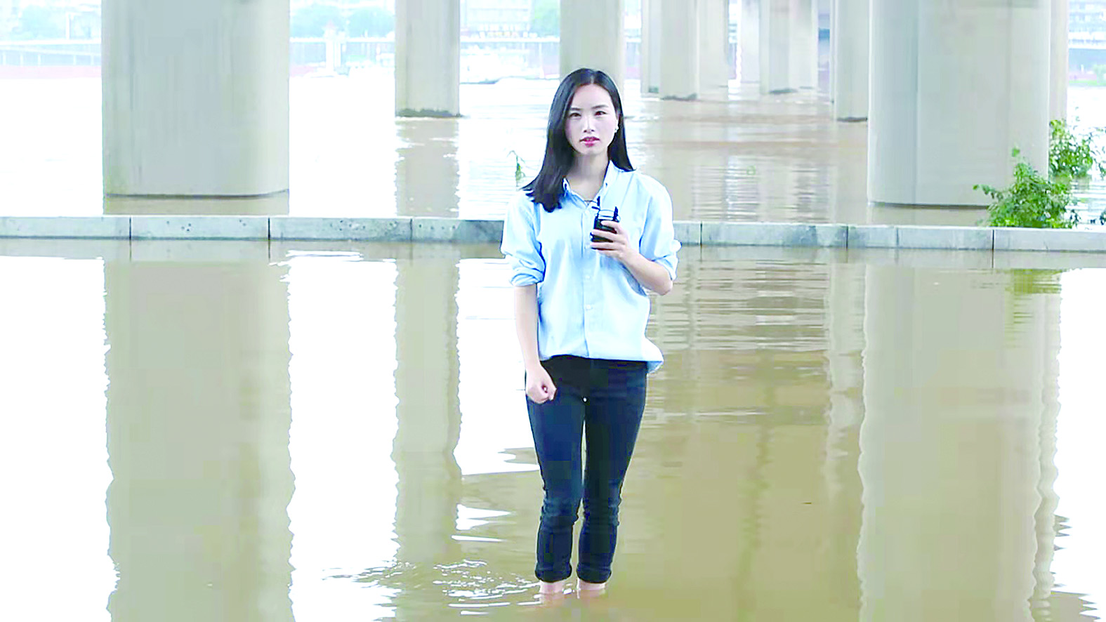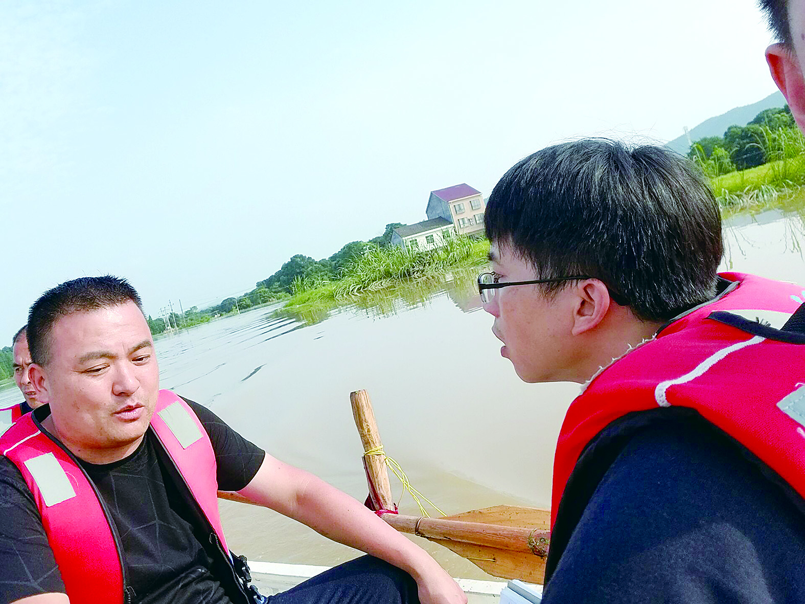 想要把惊心动魄的救援现场直观地展现给电视机前的观众,出镜是最理想的方式。可登船后才知道,救援船从江岸撤离点到达古桑洲只需短短5分钟,也就是说廖姗必须在5分钟内准备好出镜文案,并和摄影师一起冒雨站在湿滑的甲板上完成出镜拍摄。时间紧、任务重,还不能出安全事故,是冒险出镜还是用常规方式报道,成了那一刻的艰难抉择。