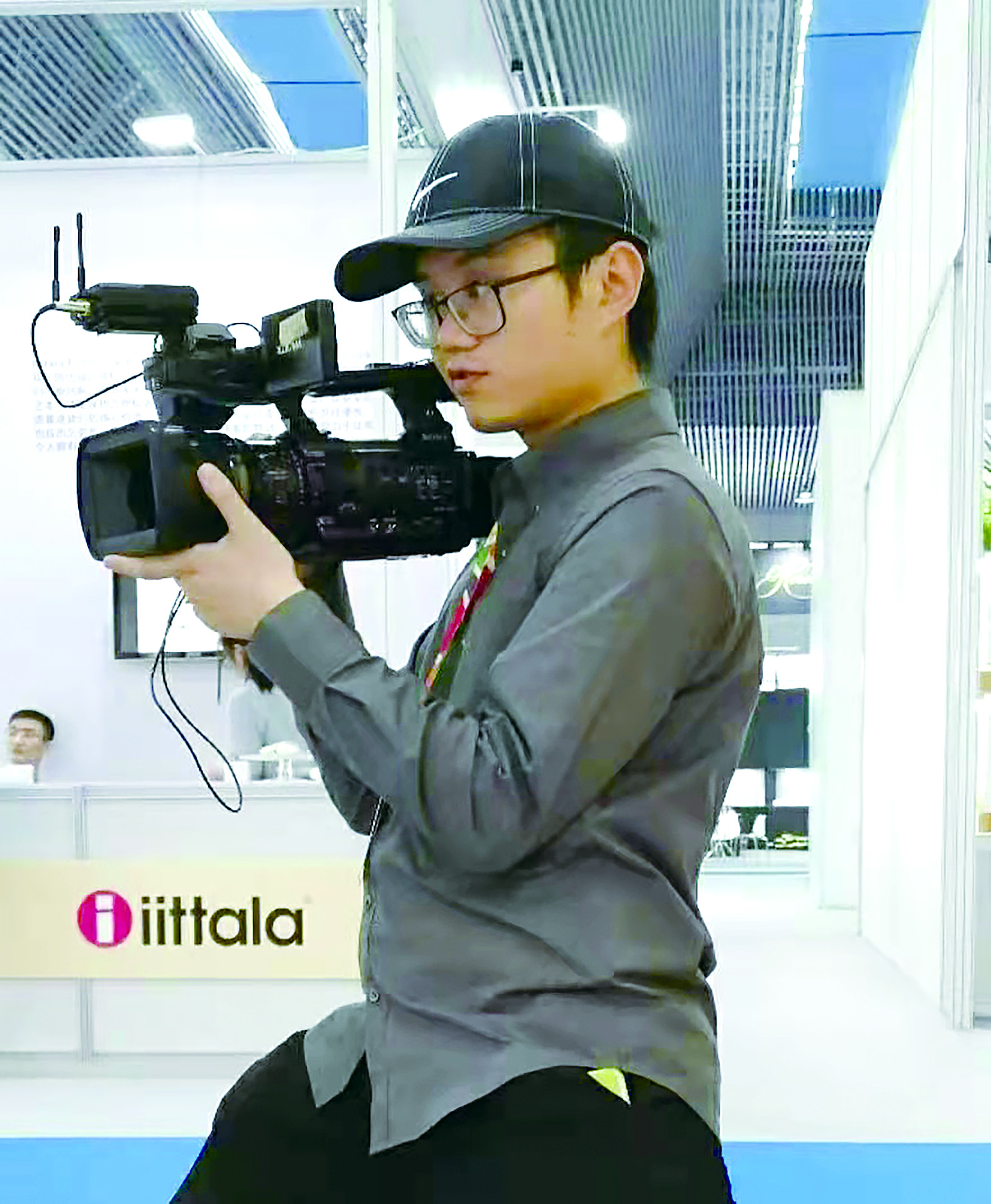 张逸鸣手持摄像机,用镜头传递家乡发展好声音。 受访对象 供图