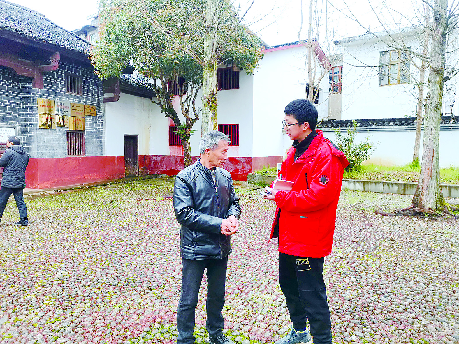 记者戴凛(右一)在炎陵县参加采访“百年潮 株洲红”主题采访。 株洲日报·掌上株洲记者/谭清云 摄