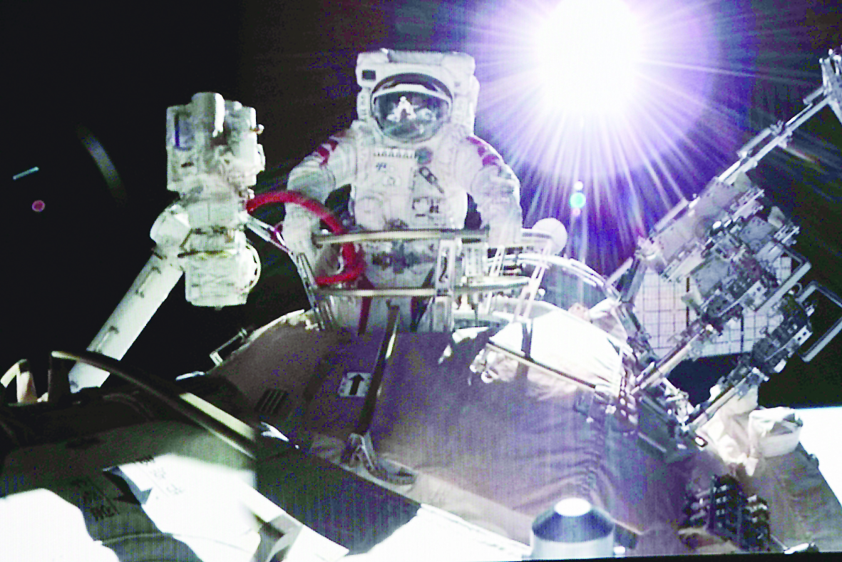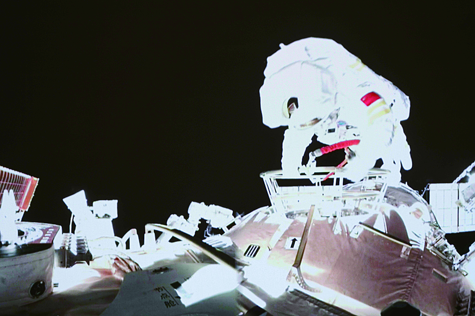 新华社北京11月7日电 据中国载人航天工程办公室消息,北京时间2021年11月7日18时51分,航天员翟志刚成功开启天和核心舱节点舱出舱舱门,截至20时28分,航天员翟志刚、王亚平身着我国新一代“飞天”舱外航天服,先后从天和核心舱节点舱成功出舱。