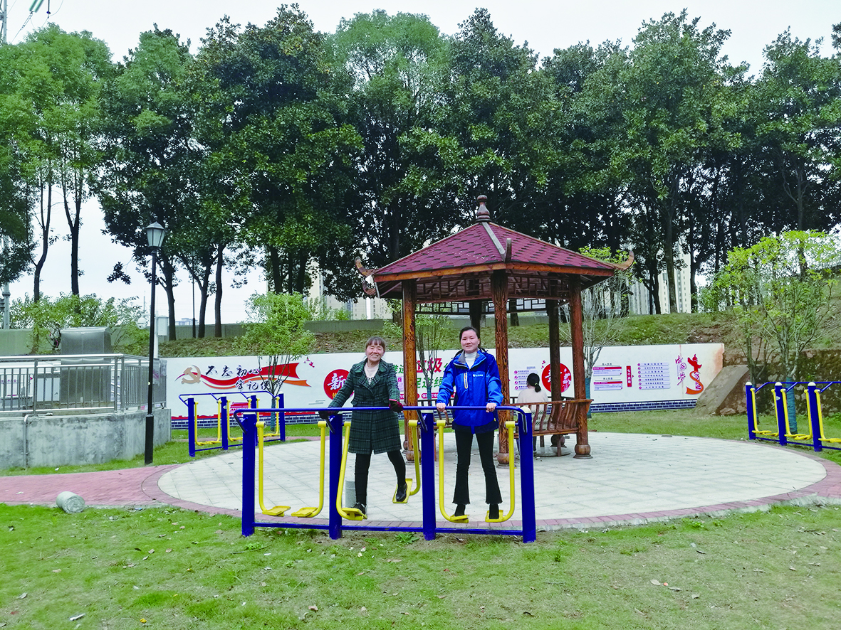 火炬小区小游园,居民在健身休闲。 株洲日报·掌上株洲记者/李逸峰 摄