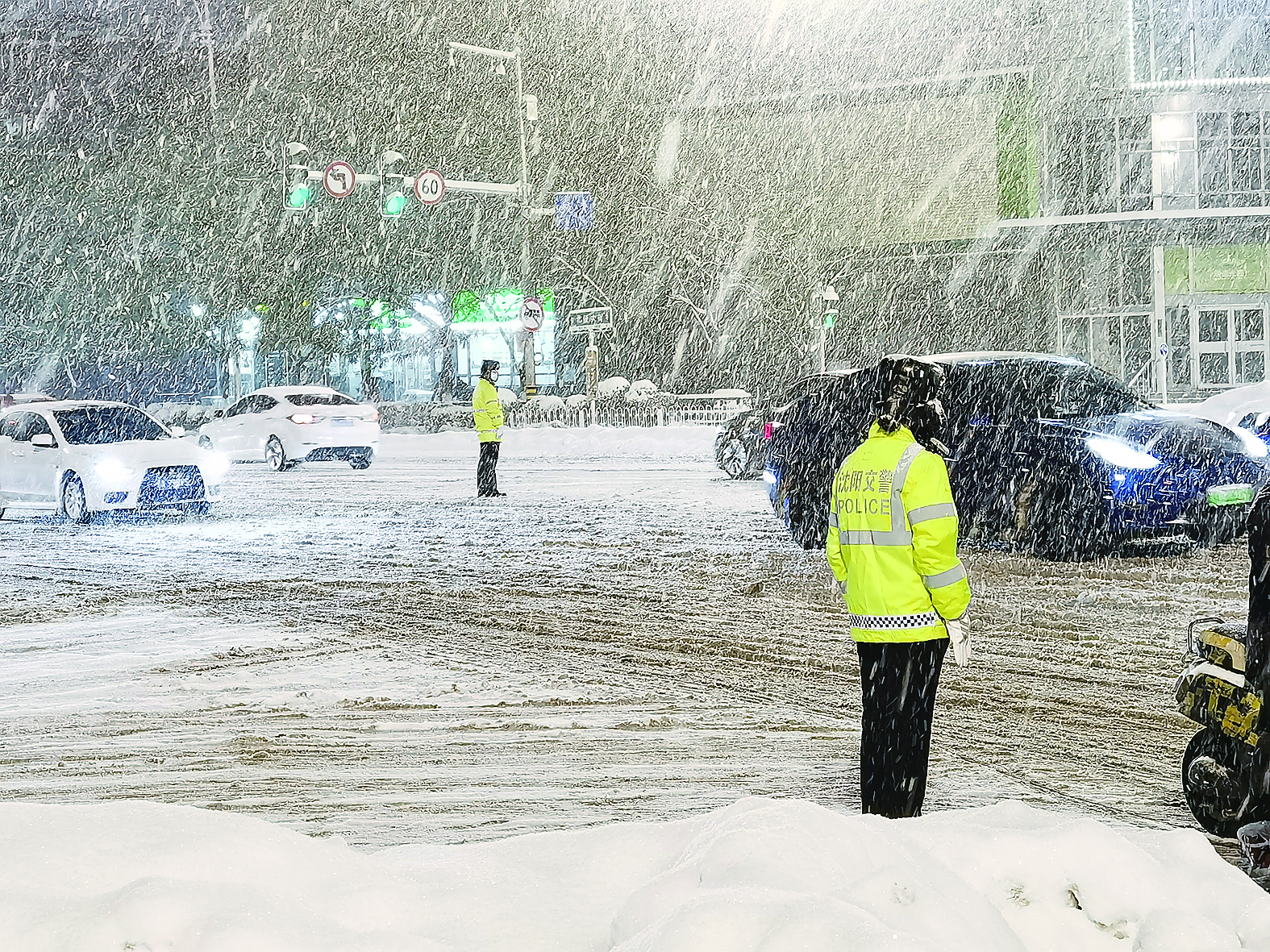 11月8日,沈阳交警在雪中指挥交通。新华社发(崔凯 摄)