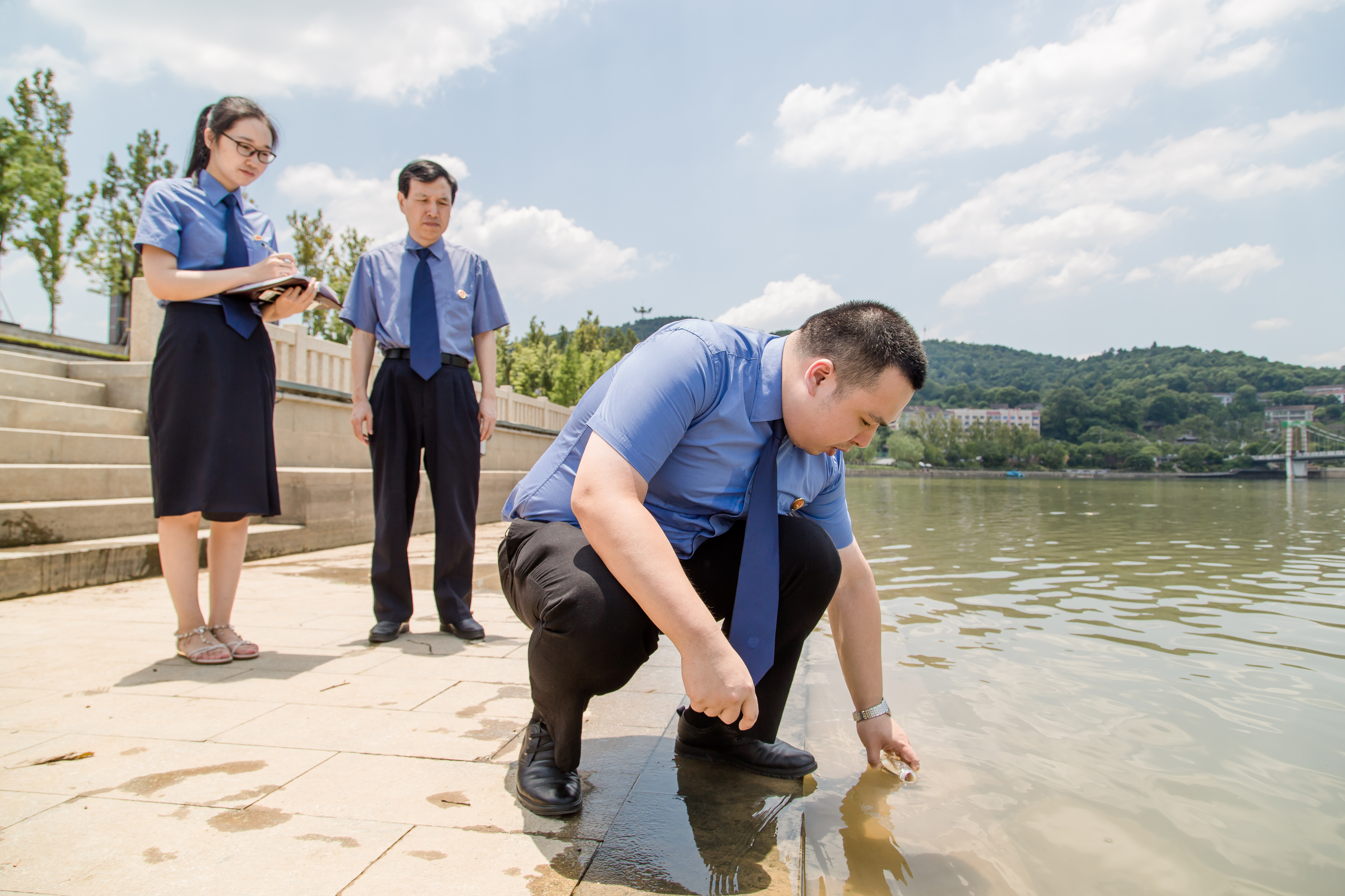 检察机关为保护母亲河生态环境 现场察看水质