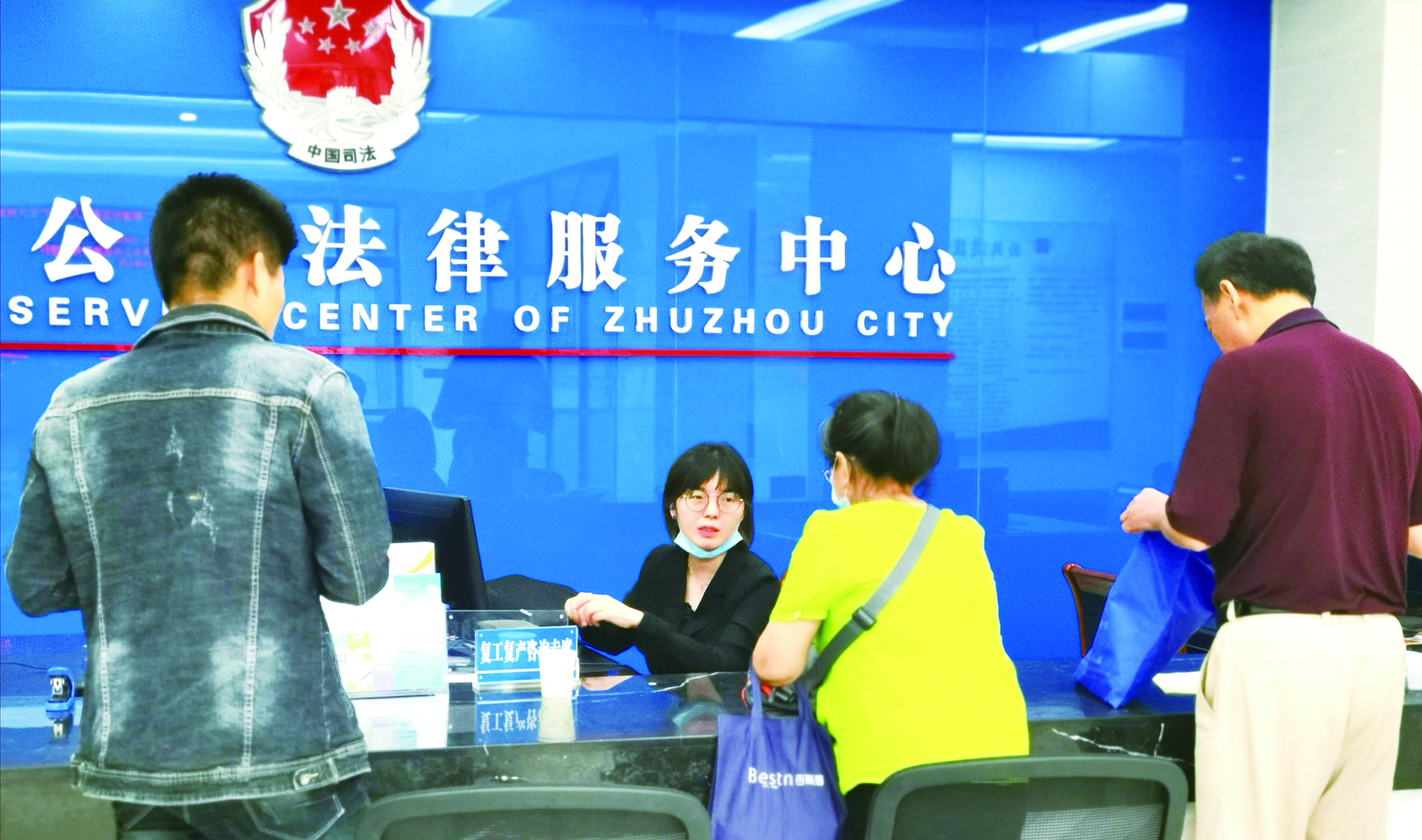 株洲市公共法律服务中心接待群众咨询、办理业务。