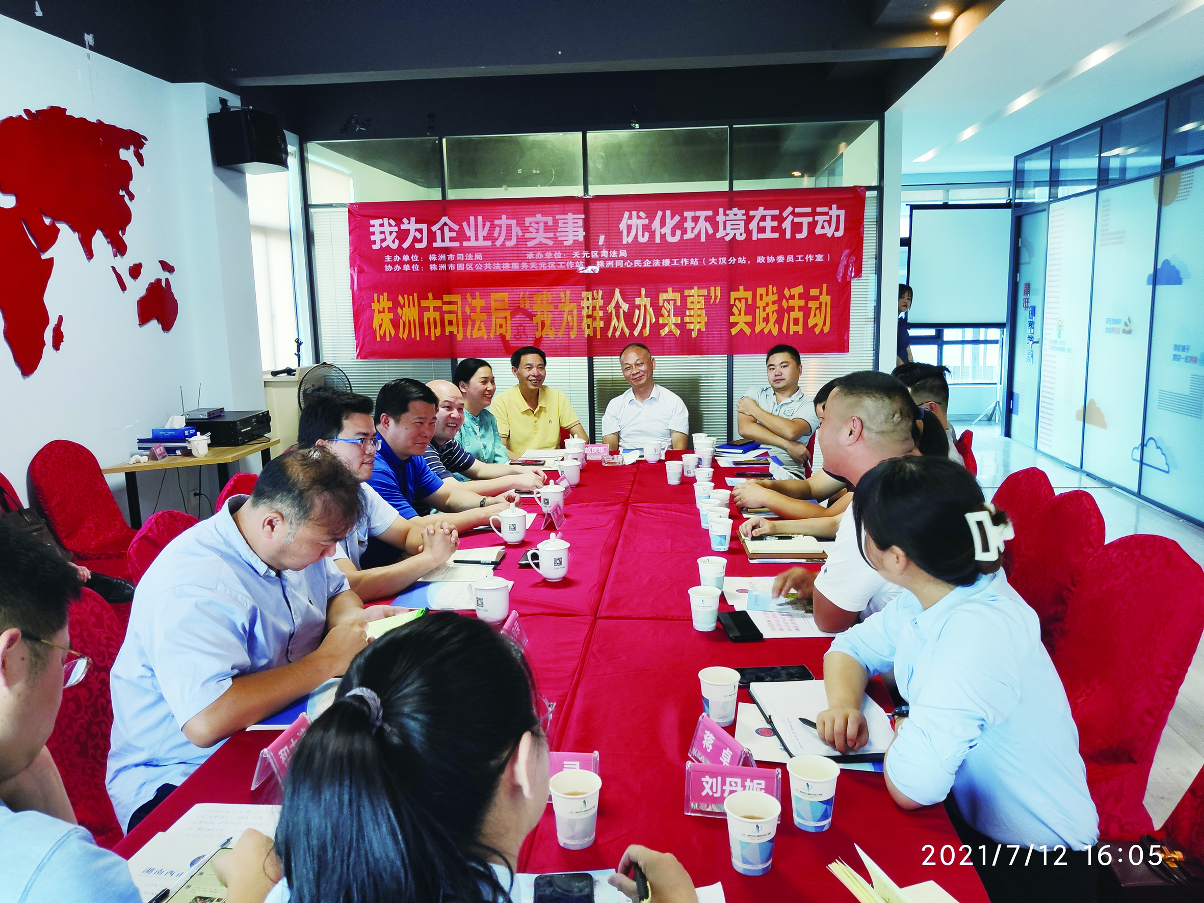 7月12日,开展“我为企业办实事,优化环境在行动”法律座谈会,为企业主把脉问诊,提供法律咨询和服务。